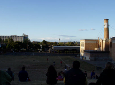 Since I was a meteorologist in my past life (before Brandeis), and I know the limitations of the job, I kept my hopes up for seeing the swifts despite the gloomy weather forecast this weekend while my daughter is with me. Though the forecast was for a rainy day, the clouds cleared all day long and it was a really lovely afternoon and evening. We pulled on sweaters and grabbed a blanket and off we went to the Chapman School. (Please read previous post for a better background on the swifts.)