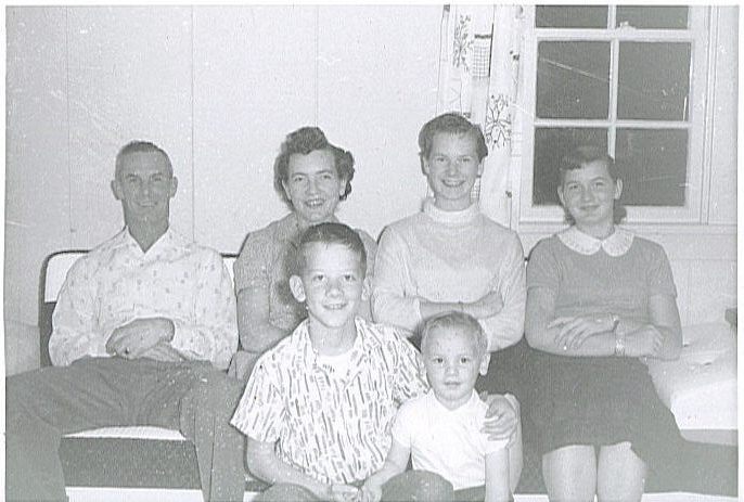 Grandpa Rex Trulove, Grandma Freda, Aunt Pat, Aunt Judy; my Pa and baby Uncle Buzz in front.