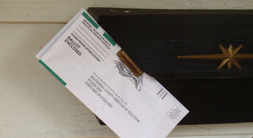 My buddy Earnest knows how I feel, but he tries to talk me out of my negativity. I showed him my workbooks and flyers and my ballot on Monday. They rested on my desk, waiting patiently for more attention. Oregon’s got all these measures that really require some studying up on (hint: you’re better off to ignore the flyers). Earnest realized that despite my consistent bashing of the system, I’m putting my full effort into a conscientious vote. He took a step backward and rearranged his Yankees cap over his dreads.