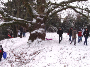 We weren’t the only kids who thought of sleds. We joined other squealing families flying down the hill. Mt. Tabor has a giant park, and we didn’t even get to the top of the extinct volcano…so I imagine there must have been sledding people all over the place.