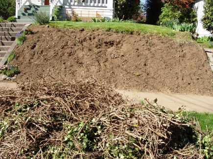 - The huge tree is gone. No more roots crushing our foundation. No more squirrels spreading millions of pine cone shells all over the patio as soon as I sweep it, or filling the rain gutters of our house and the neighbor’s with pine cone pieces.