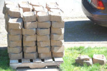 We did a little research on wall-building bricks and found the least expensive and most reusable (in case we change our minds). For only $112 we purchased enough bricks to build a bit of a wall to keep the dirt off the sidewalk. Home Depot (which is about 1 mile from the house) rented us a truck, loaded the bricks on with a forklift, and within two hours we had a pile of bricks in front of the house and a bit of eager excitement to get to work again.