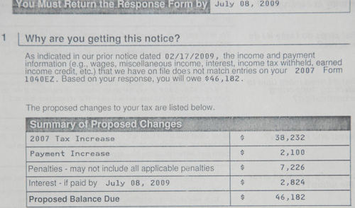 Ok, so everyone owes the IRS at one point or another. But $46,182? That’s obscene. Forty-six thousand, one hundred eighty-two dollars. Right. You know, I can’t even get worked up about it because that amount of money is simply… ridiculous.