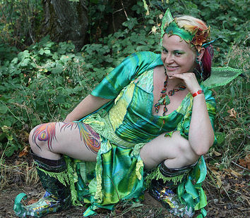 Last year my Tara got some elf ears for the first time. It was a bunch of fun and she will be able to use them again this summer. Yes, the heat is a problem, but festival organizers are really careful about safety, and there is free sunscreen at the first aid tent, and there are lots of faeries that run around and spray mist on people!