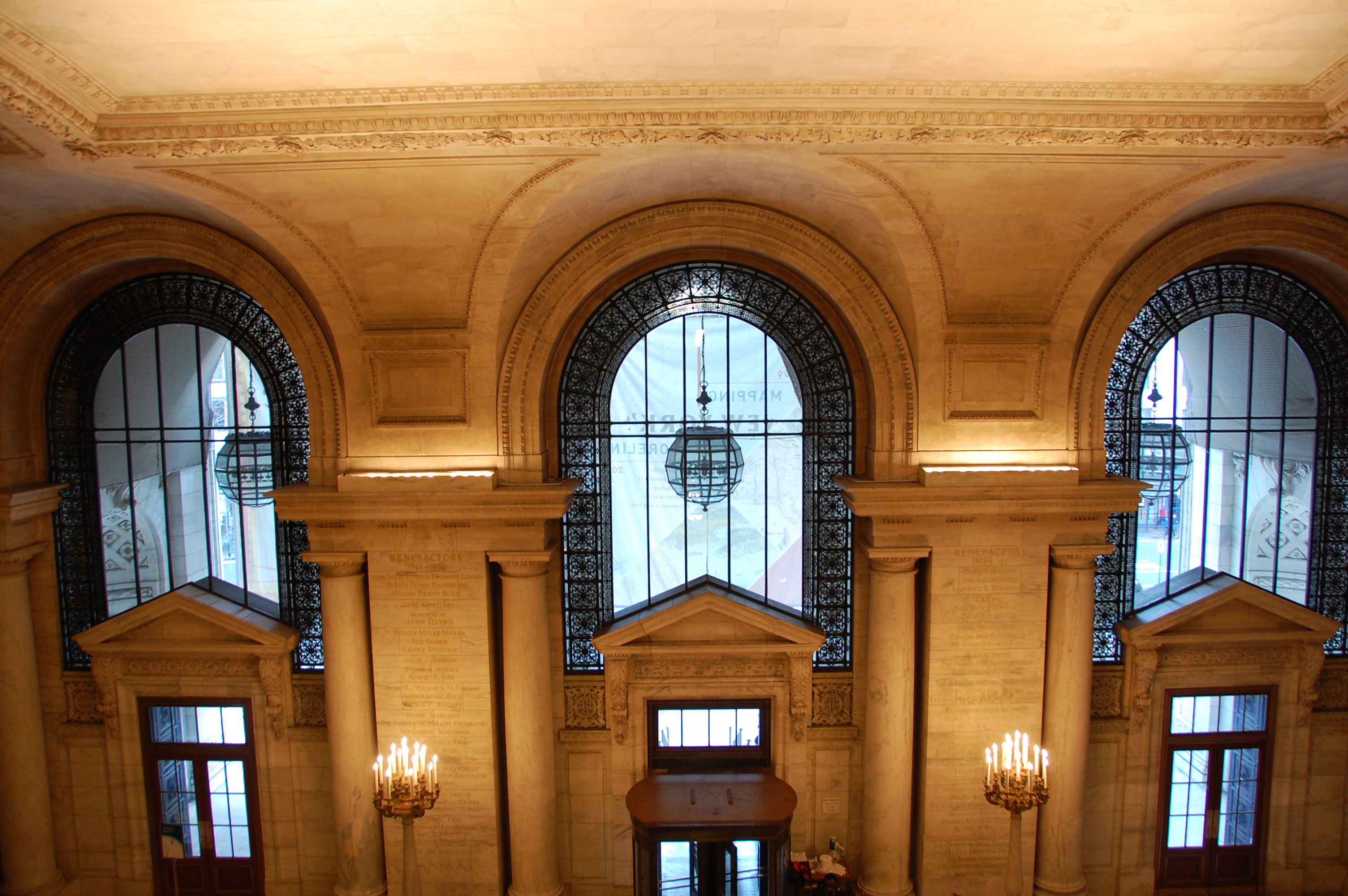 The New York City public library is a stop not to be missed by anyone in the city. I am SO grateful we have a learned, traveled grandmother. We came in by a side door and thus happened accidentally upon the stunning foyer at the front entrance by approaching it from a second floor balcony. Marble floors, marble walls, staircases, arches, ceilings, columns, and even marble benches inside. It all glistened from polishing, and glowed pale caramel and cream. Chandeliers cast fiery sparks onto everything. We walked down the long marble staircase on one side of the room, crossed the foyer and then walked up the long marble staircase on the other side of the room. All the while our heads were tipped dangerously backward and we walked in waving arcs as we tried to see everything from every perspective (and not fall down while we were at it!).