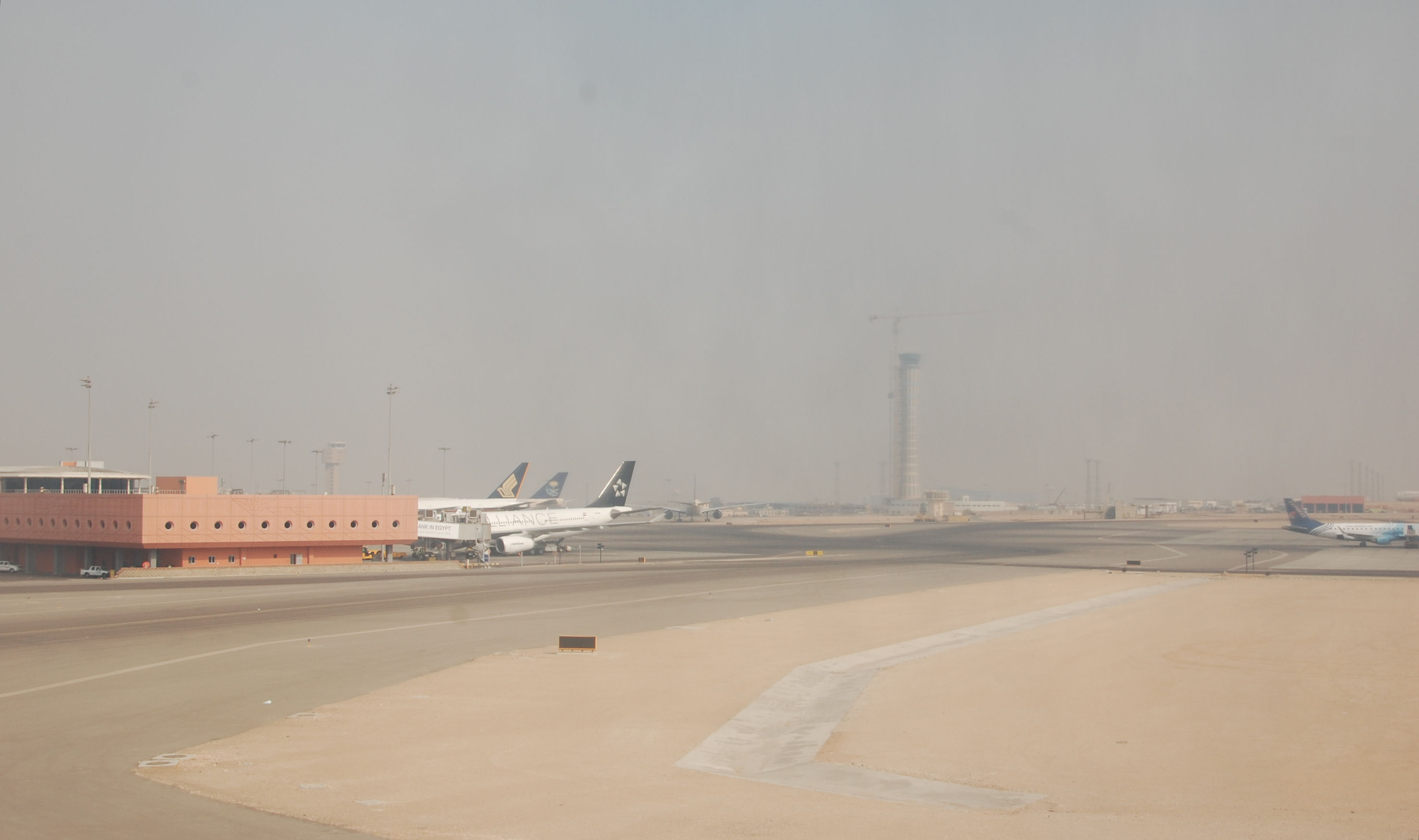 Tara was not able to sleep, and instead entertained herself all night long with English subtitled Egyptian comedy and Arabic subtitled movies like Ice Age III. They cranked on the lights and suddenly started making a lot of noise a couple of hours before landing. I had decided not to ask for breakfast, but got a plate dropped in front of me anyway. I ate it to help me wake up.