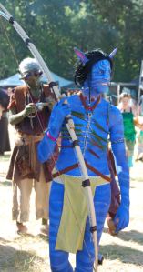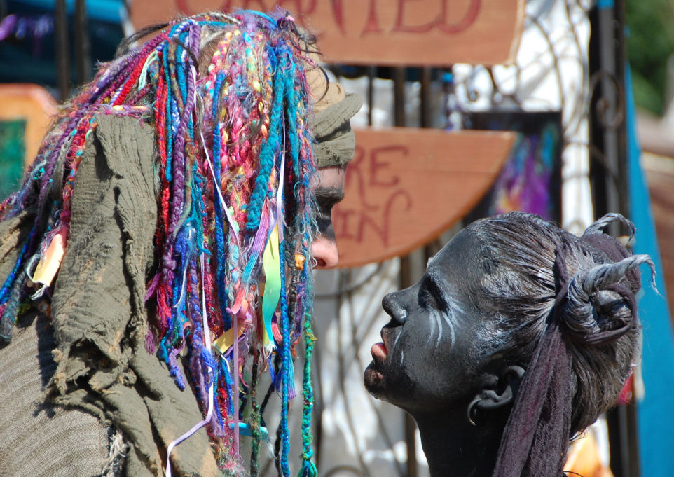 Here there be dragons! Gnomes, Green Men, angels, demons, devils, centaurs, and fauns. There are also beings to defy description – as one would certainly expect to find in a world of faeries – such as wild men in furs and tribal paints, children wrapped in vines, women adorned in lights and glittering metallic talismans and carrying magical staffs and crowns. We spotted a visit from a Na’vi this year.