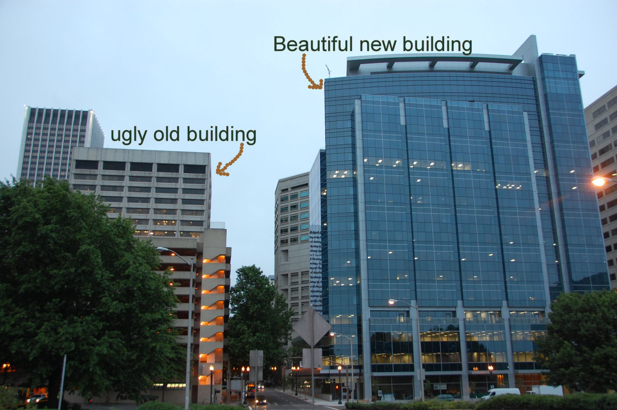 After snapping some photos of the art installation, I caught the photo below, which reminds me of a new chapter soon unfolding in my VA life. We are currently in the old Edith Green – Wendell Wyatt Federal Building, a recipient of one of Obama’s shovel-ready projects. The tired concrete eyesore is scheduled for much-needed updating and greening. In order to finish the repairs quickly, the whole building will be evacuated during the work, which means all the organizations inside must move. Along with VA, the IRS, Marine Corps recruiters, Railroad Retirement Board, and all the others must find a new, temporary, home by the end of October. Our new home will be in a shiny, brand-spanking-new building recently completed, and one block away from our current location. Rather than move back to Portland’s Ugliest Building in downtown, we get to remain permanently in our new rented space. Yay!