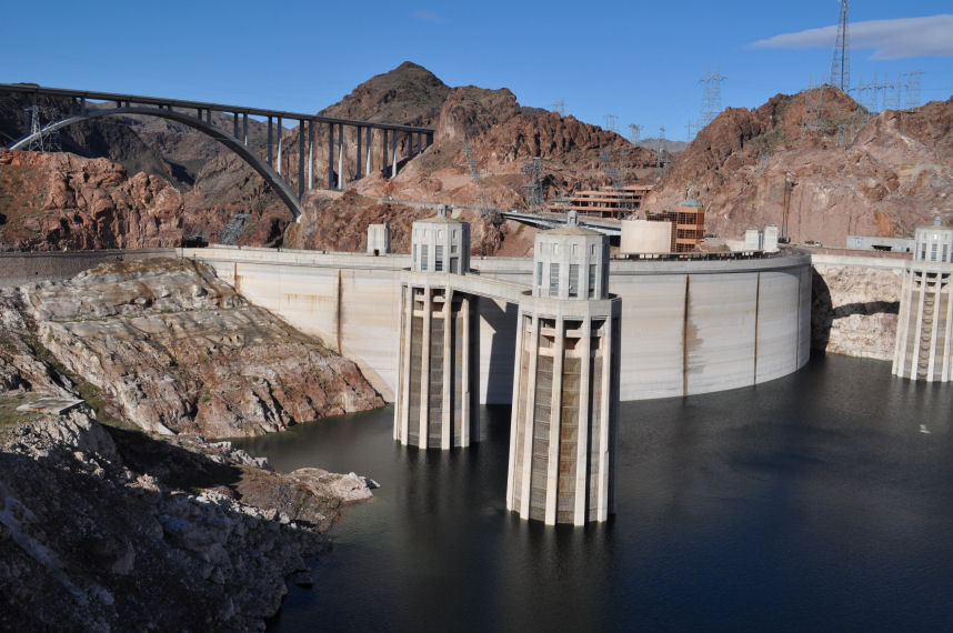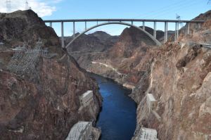 Let me dispel the myths: you can still cross the dam for free! There is a beautiful new, convenient parking garage that costs $7 to park, but if you cross to the Arizona side, you can still park for free too, if you don’t mind a few hundred yards’ walk. You do have to pass through a security checkpoint, but it is quicker and easier than going through the bug station, so don’t give it a second thought. Another difference is that you cannot continue on and reconnect with the new highway. Rather, there is eventually a turn-around loop, and you must cross back across the dam in order to return to the highway. Please do make a point of going there if you haven’t already. Hoover Dam is an engineering feat rarely duplicated in the modern world. You will be impressed with the dam and the bridge, I promise.