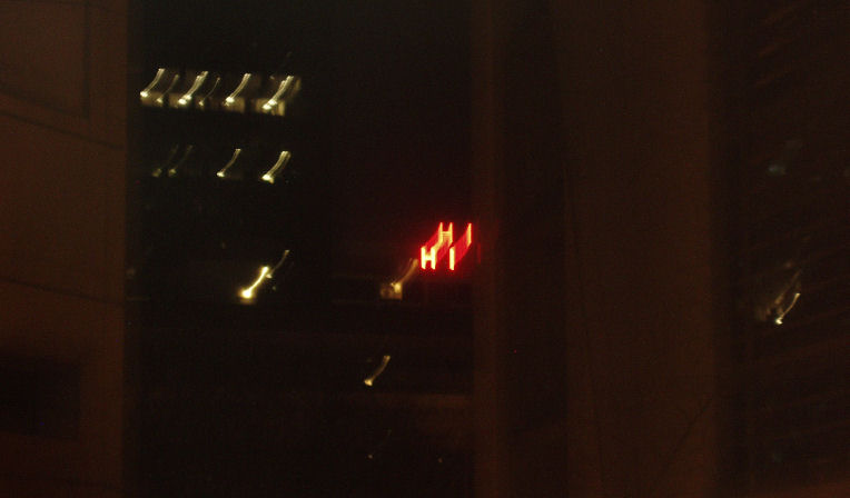 There are a series of de-humanizing things about working where I do. I’ll bet you can relate. But each day when I show up in the dark of morning and wait till 6:00 am before the office computer system will allow me to log in, I stare out the window and the city says back to me, “Hi!” In all the blackness outside, huge red letters greet me. I know it’s completely silly, but it makes me feel better.