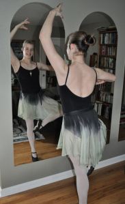 My ballerina is excited about her upcoming show the second weekend in June. It’s a presentation from the Laurelhurst studio within Portland Parks and Recreation. All of the dances are from adults except one, in which the kids dance to an inspiring arrangement from Black Violin. Tara is somewhat disappointed in their costumes because they are silly and cute and do not match the music, nor do they look like something ballerinas would wear. She has resigned herself to the thought that perhaps it is because she is in the kids group, and perhaps it was the costume designer’s idea all along to make it cute. Until then, she practices in her own gear, decidedly more elegant.