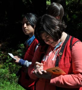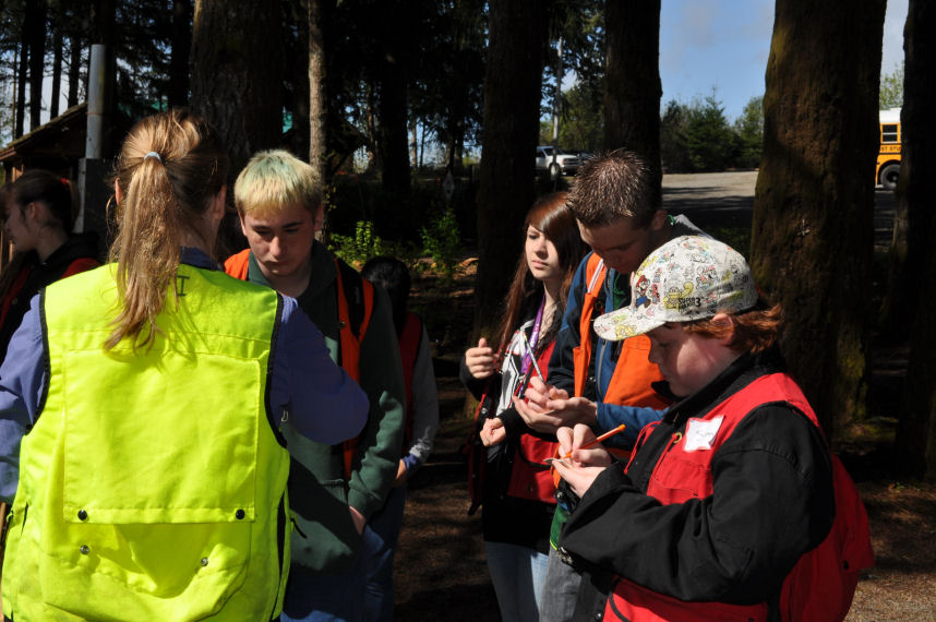 I chaperoned the 8thgrade science field trip to Hopkins Demonstration Forest last fall. The class graciously invited me to attend the spring trip as well. It was interesting to see the same forest in a different season, and to learn new forest management skills. In the fall we learned about soil types and erosion. This time we focused on measuring, identifying, and sampling trees.