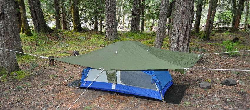 Despite the relatively dry evening, I took no chances and attached the tent’s rain flap as well as an additional tarp over that. It was a good call. The steady rain began in the night and continued all through the morning. We stayed snug as bugs inside.