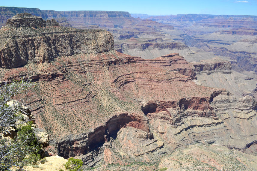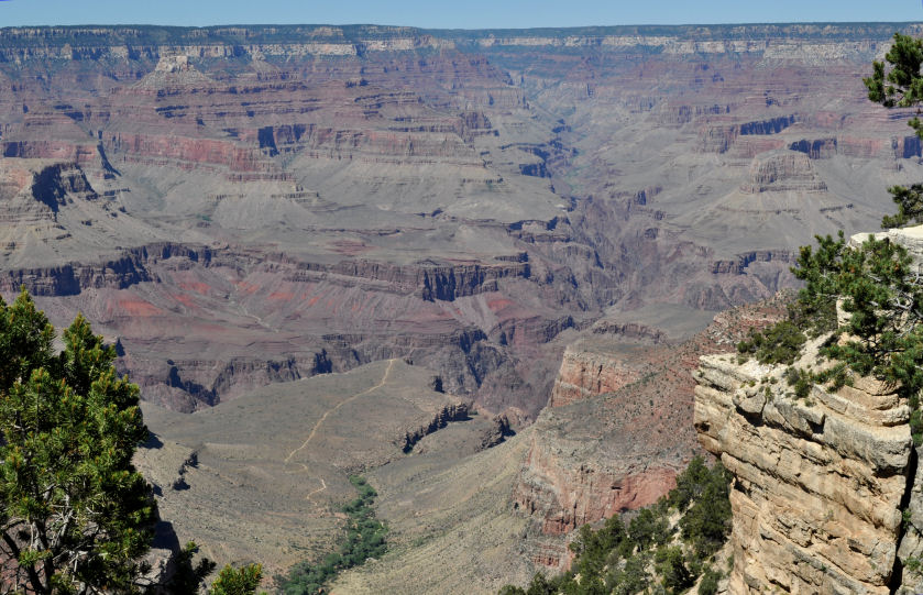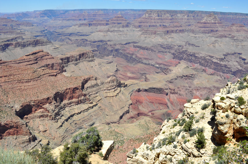 Finally got to the Grand Canyon and made one stop at a lookout point before being deposited at the main Village area, site of the famous El Tovar Lodge. We were starving, so wasted our first 40 minutes there getting food. Then we were left with an hour to look around. We did not go far, didn’t even hike a trail, but the canyon is sufficiently stunning no matter how one is able to see it. We played the role of tourist, taking many shots of each other at the canyon’s edge. Browsed a gift shop. Watched foreign tourists with curiosity: listened to their German, and French, and Spanish voices.