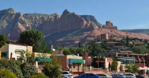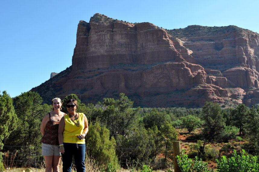 Our driver and tour guide was Tom Haas, who kept us entertained and made stops along the way for us to take photos and to browse souvenirs for possible purchase. Our first stop was outside of Oak Canyon, Arizona in the Coconino National Forest. We had a great view of gorgeous red rock formations that make the Sedona area famous. We took quick photos, then jumped into the van and continued on into the town of Sedona.