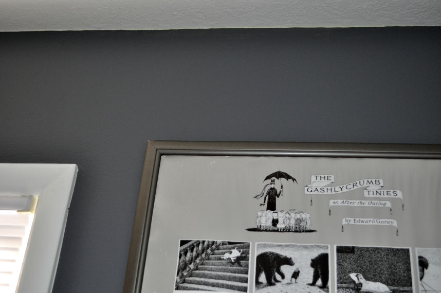 I finished painting my daughter’s room. Dark grey. I protested, not a little. She stood firm (ooh, I raised an independent girl. A fact which bites me in the butt sometimes). It wasn’t until I got all the way around with the first coat, and could see it more or less in a complete state, that I realized it looks nice. Tara said, “I like how you called it ‘my cave’ Mom, because it is! It’s my cave!”