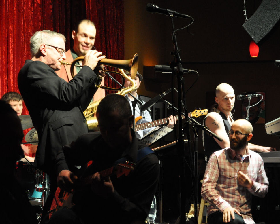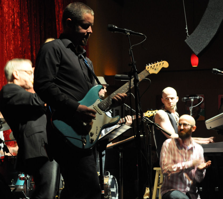 Over all too soon, Intervision took the stage. My feelings of disappointment for not having ME on stage lasted about 3 seconds until I was reminded of why I *LOVE* catching Intervision in concert. Cripey, that is one groovin’ croonin’ happy jazz band. Love it, love it. One of my favourite things about Intervision is the obvious individual personalities I see on stage. Though I don’t know them, I get the sense that these guys might not have anything else at all in common except that when you put them together they make magically moving jazz. I don’t even consider myself a jazz fan, and this stuff is irresistible. In no time I was wiggling in my seat as much as I had done with my favourite ME songs. Who can resist great music?