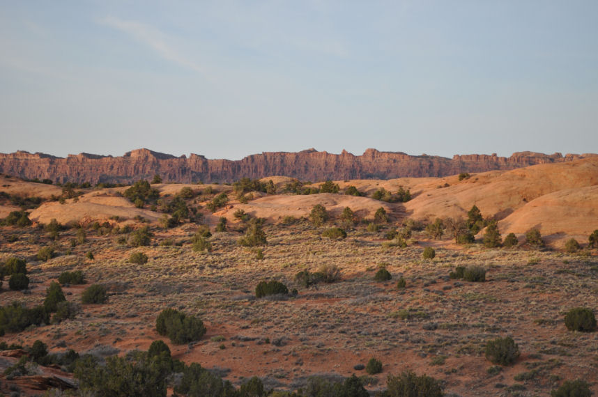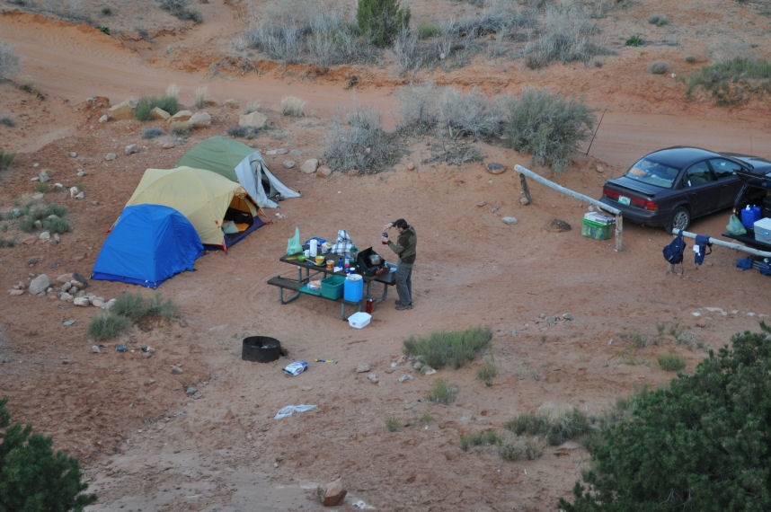 Arno texted that he would meet us at the Information Center in Moab, and we found them without any effort. The sun had gone down, but it was still light when we found them. They led us directly to camp, and we were able to set up the tent with light in the sky. Then Arno “shooed” me up the rocks to take a look at the sunset. I carried my camera with me, of course. He was already in camp mode and I was truly spent, so I let him manage supper operations, and then pitched in fully when it came time to eat!
