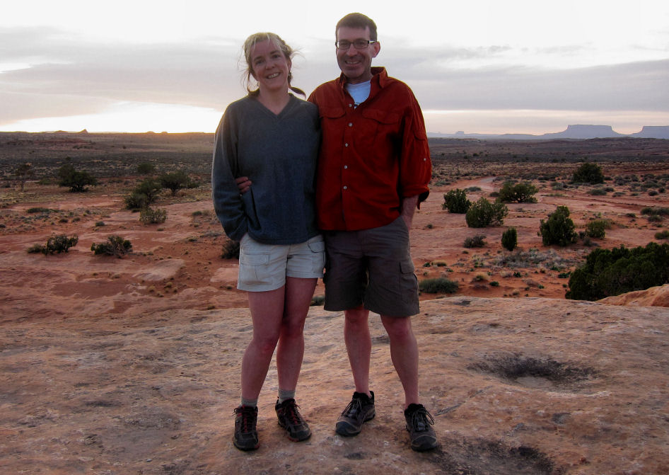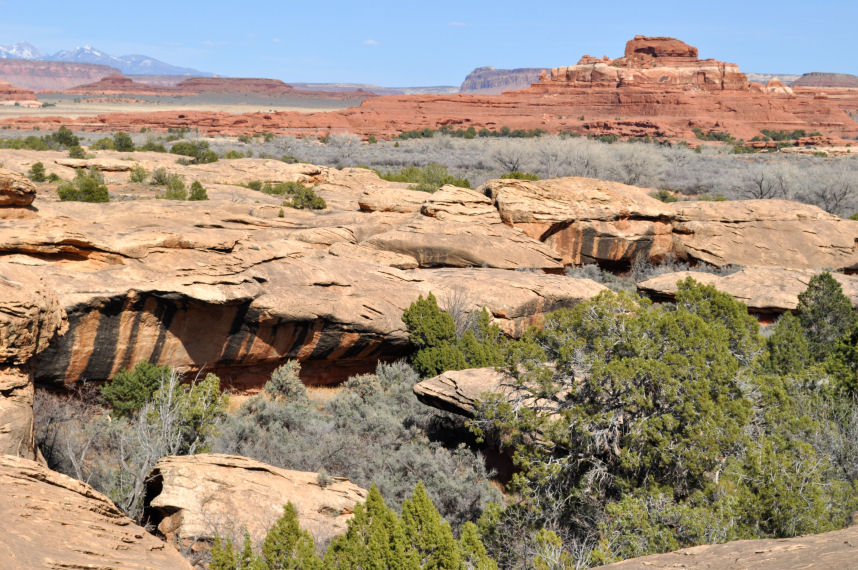 Our big plan for the day was to get closer to Canyonlands National Park. We were camped at Sand Flats Recreation Area, situated close to Moab, just south of Arches NP. This is a great central location for vacationers into trail biking, dirt biking, quad running, and having a city nearby for water, ice, and beer. It’s not a great base camp for Canyonlands, however. So we packed up to make the 2½ hour trip south (it would have been 1½ hours, but we dawdled). We stopped first in Moab for ice, dry ice, and water. Arno brought a couple of 5-gallon jugs that we lived from.