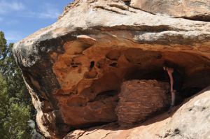 We ate lunch and then went into the park to try a trail or two in the remainder of the day. We stopped at the Roadside Ruin, which appears to be a reconstructed grain bin of some kind, made of rocks mortared into a large container under a rock ledge. Arno and I agreed that if reconstructed (it looks brand-new), the granary is not compelling. Even if it’s modeled exactly after an actual ruin, or in the same exact spot. It just isn’t the same. The fascination of an actual ruin is that ancient people actually touched those stones; placed them precisely in that spot.
