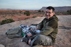I was fussing by the fire when a blue light lit up the sky. I looked up and witnessed my first bolide. A marvelous brilliant burning blue orb – as big as the moon in the sky! – went shooting from north to south. Near the southern part of the sky, there was a burst and the blue turned green, while two red sparks flew off on either side. Then it went blue again and finally burnt out at the southern edge of the sky. I was shouting, “Look up! Look up! Look up!” in hopes that someone was nearby and would also spot it. Tara and the girl and Diego were on top of the rock, and got a brilliant view. Arno, the degreed astronomer, happened to be inside the truck cap, buried in camp gear digging for something and didn’t manage to get out and look at the sky till it was all over. Dang! After my description though, he is the one who told us what we had just seen. A bolide, he explained, is a shooting star, only a big one. “Baseball sized,” he said. “I’ve only seen that a couple of times before.” Well, I felt a little better since he had seen one before. It was a first for the rest of us.