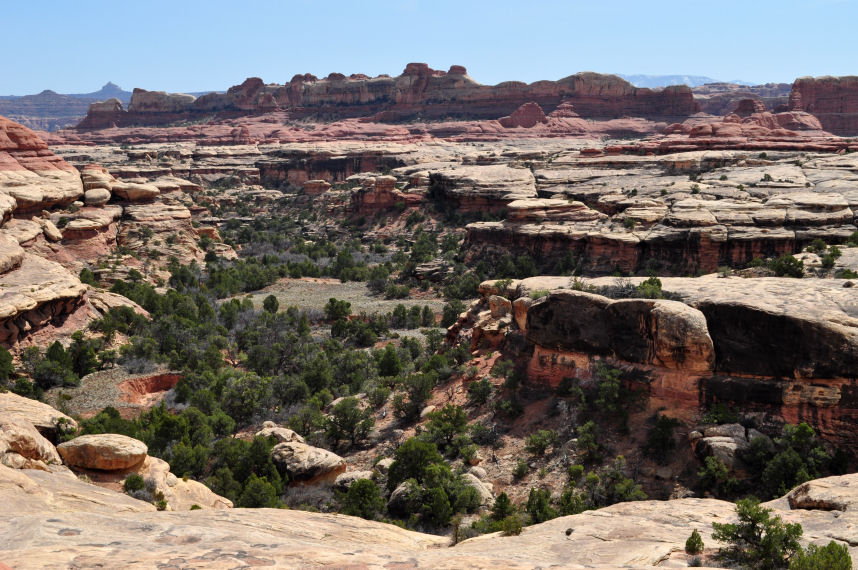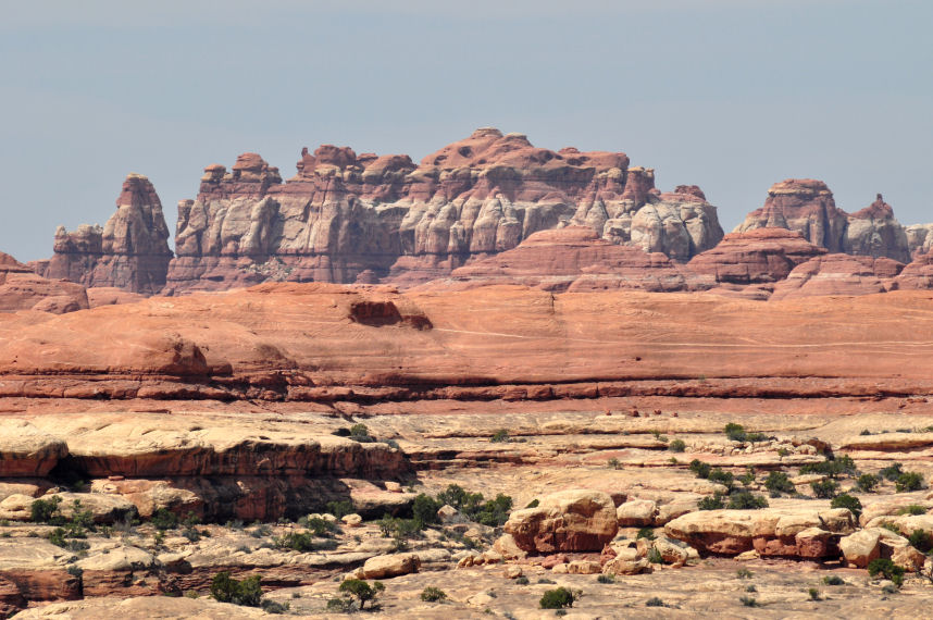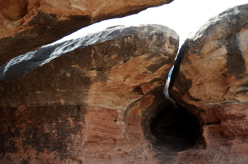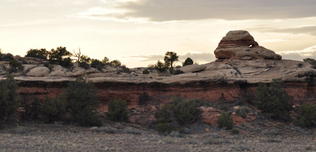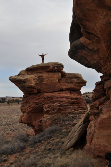 We crossed an actual creek with water in it, went through a forested area, crossed an open plain, and yes, scaled the inevitable slickrock path to the top of a saddle in the distance. The kids had been going along ok and then Arno points out across the wide desert and says, “See that ridge on the horizon? That’s where we are going.” Which, of course was followed immediately by the kids whining about what evil torture we were forcing upon them. I still have some things to teach Arno about the psychology of kid-rearing. Don’t ever point waaaaay off in the distance and say “We’re going there.” There is only one possible reaction, and it’s not a good one. He followed my lead and we did not discuss distance again. We got to talking and pointing things out and telling stories and before the kids knew it, we were there!