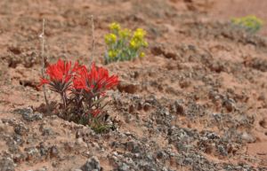 We chose the Squaw Flat Trail and walked out into the desert sun. The trail was fascinating for a nature- and desert-lover like myself. Diego even became interested in desert flora along the way, taking photos with my camera. Tara had energy that belied her consistent complaints about heat. She kept getting ahead of us on the trail so that she could find shade, then sit in the shade and wait for us to catch up.
