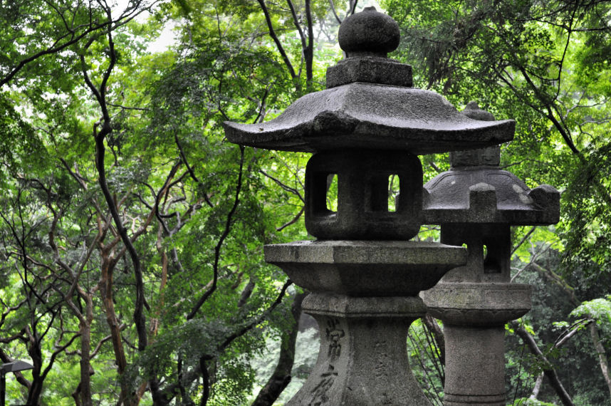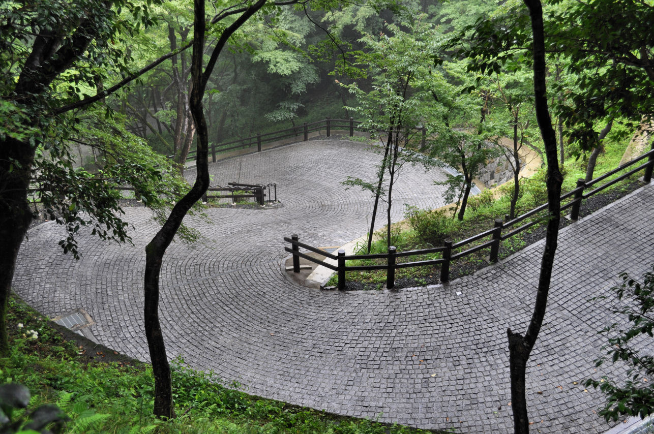 It was easy to see that this is a famous Japanese site because even on such a wet day, there were throngs of people. I am not a fan of crowds, so my eye is usually drawn to things off the beaten path. Wandering alone past stone lanterns on cobbled, mossy paths, and crossing trickling streams through luxurious dripping forests is a very good way to lose track of time and forget there is a bus waiting.