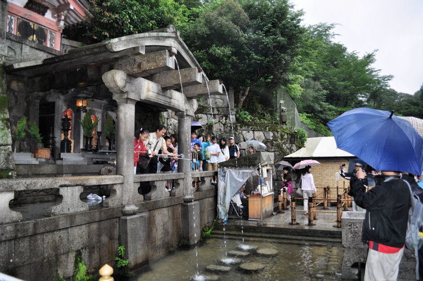 Kiyomizu, founded in 778, is yet another UNESCO world heritage site in Kyoto. This famous Japanese temple is dedicated to the 11-headed and thousand-armed Kannon Bodhisattva, the goddess of mercy. It is well known for its impressive wooden structure and for its waterfalls. Coming here from the Pacific Northwest, even I was struck by the *huge*