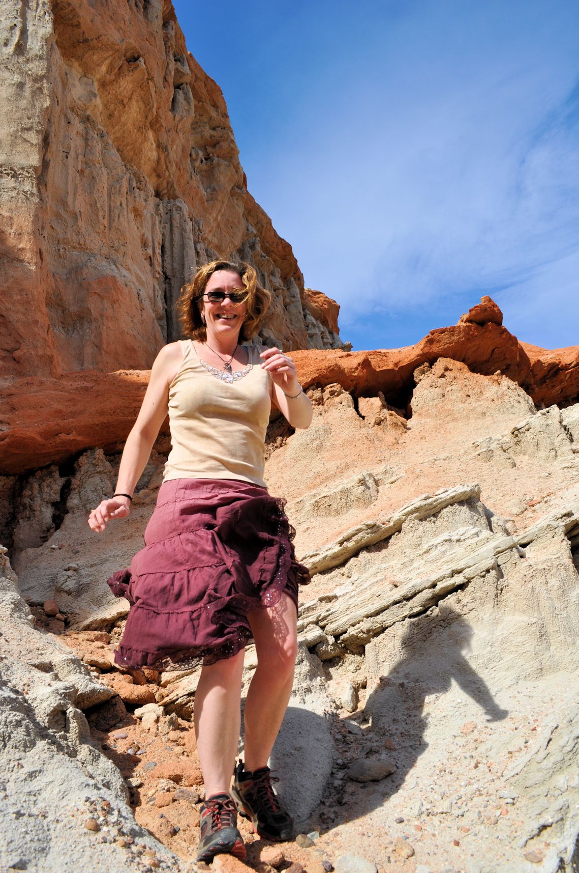 The temperature was pretty warm, but the wind was crazy wild. We drove for some time until we found a place where we could tuck the tent in the shelter of one of the larger pinnacles. Then I ran around with my camera and took photos.