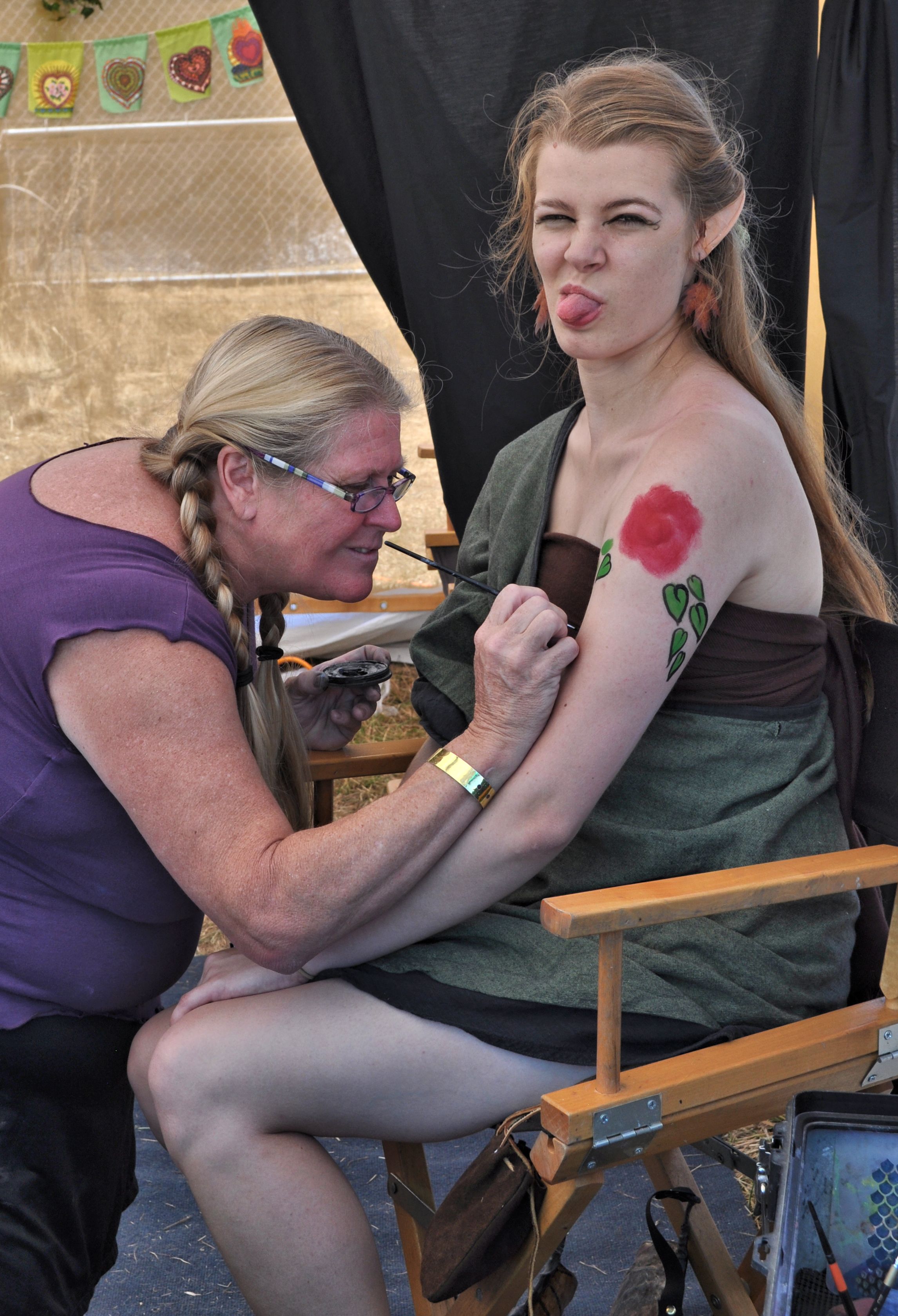 I took my little faery south on our annual pilgrimage to the world of fae in the last days of July. It’s a three-day festival, but we usually only show up for one of them. Saturday morning we dug through our collections of lace & leather, wings, glitter, leather bags, silken scarves, horns, antennae and other adornment till we were satisfied with our costumes. Then we left for Mt. Pisgah in Buford Park, just outside of Eugene, Oregon.
