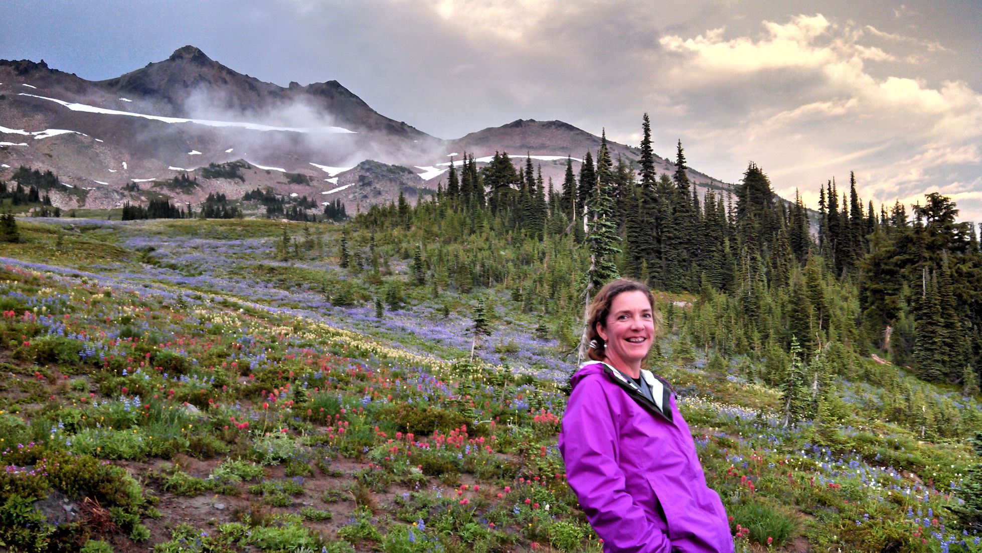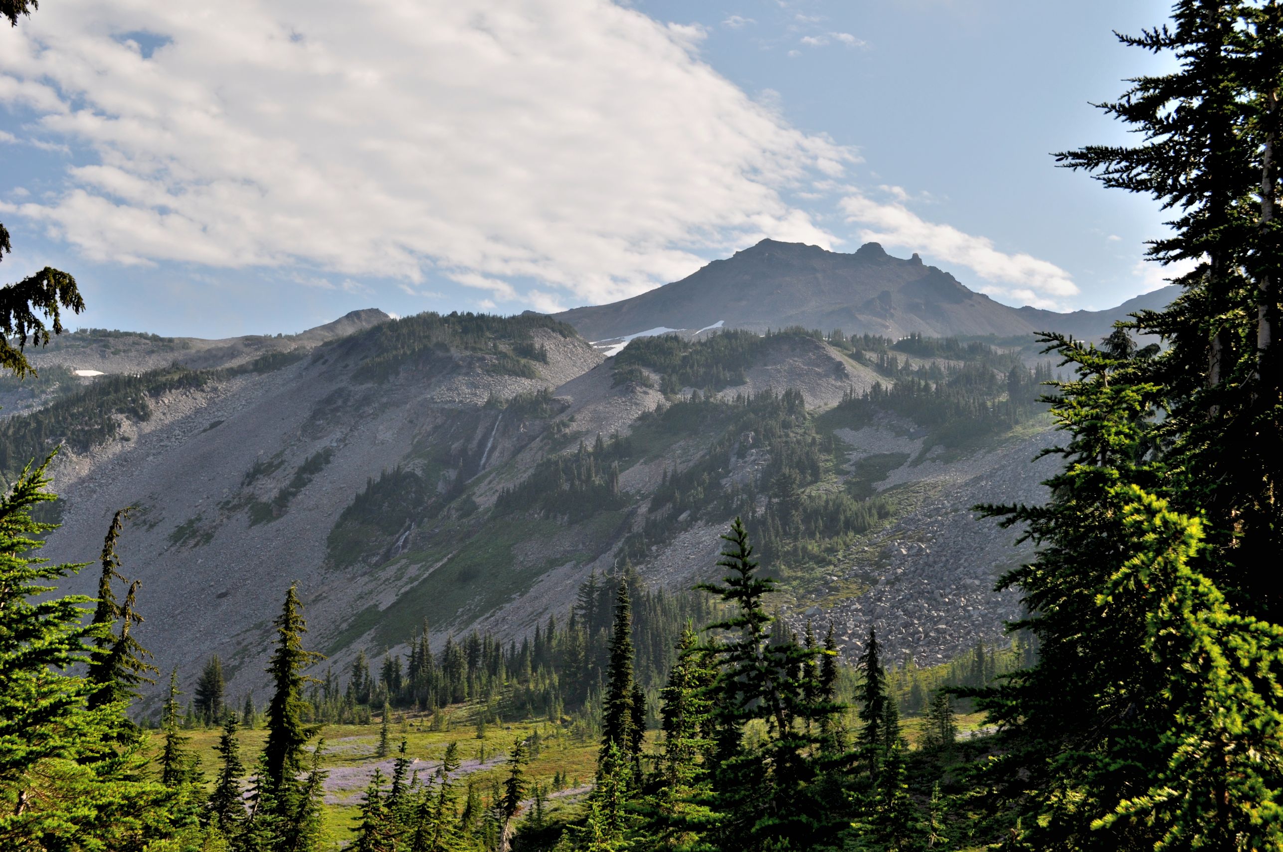 Arno is the mountaineer (but my high school mascot was The Mountaineers!), and I humored him by agreeing to climb Old Snowy Mountain, the nearest peak to us, for our Saturday excursion. We loaded very lightly in daypack gear, set out, and….gosh if we didn’t hit the Pacific Crest Trail (PCT) immediately. Turns out, we were supposed to take a hard left at the Lily Flats Trail yesterday, which was the way to Goat Lake. Lily Flats Trail parallels the PCT, and we had taken one of the short connector trails. Now, our map made so much more sense.