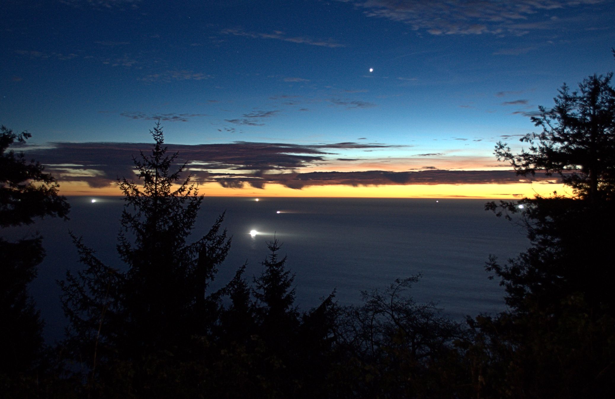 I couldn’t resist a vista stop once we reached the coast at Crescent City, and I was able to get a shot of the busy sea, filled with fishermen.