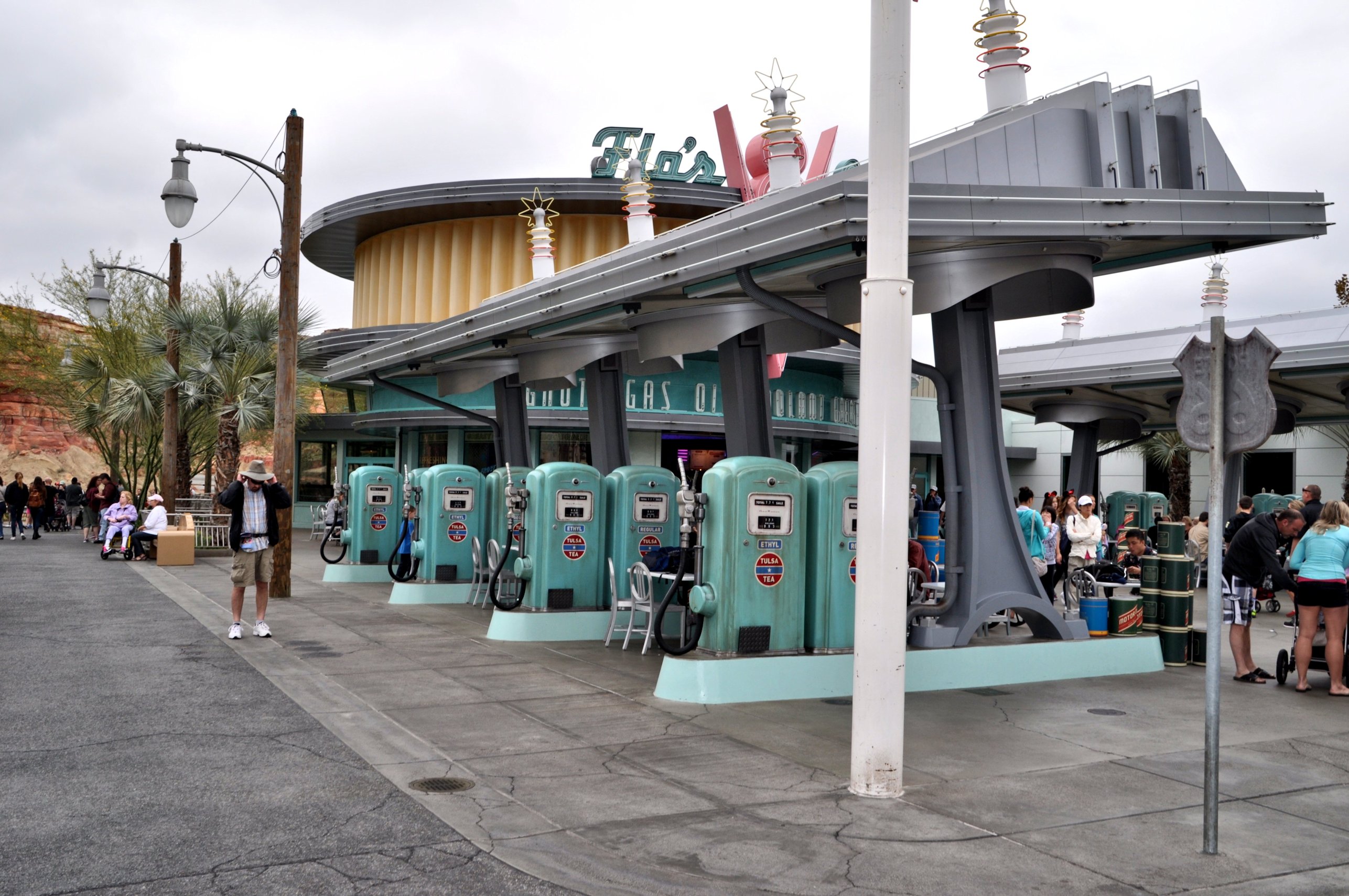 If you have seen the movie, you might be able to imagine our delight at finding in Disney California Adventure park a re-creation of the little city of Radiator Springs, on an abandoned section of Route 66, and thus trapped back in time a little, as the modern world has been slow to influence the town and it’s citizens.