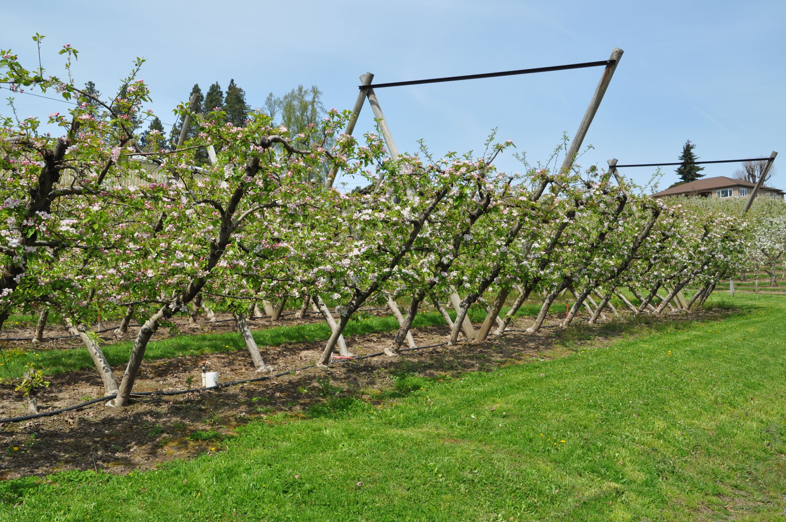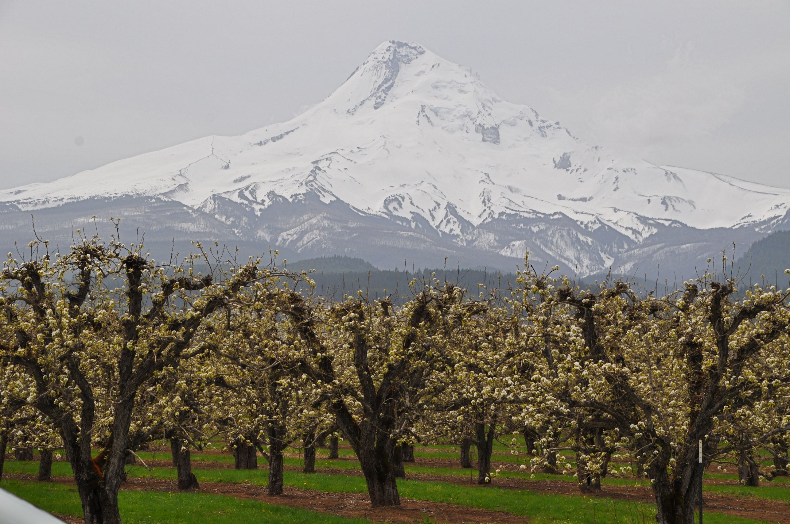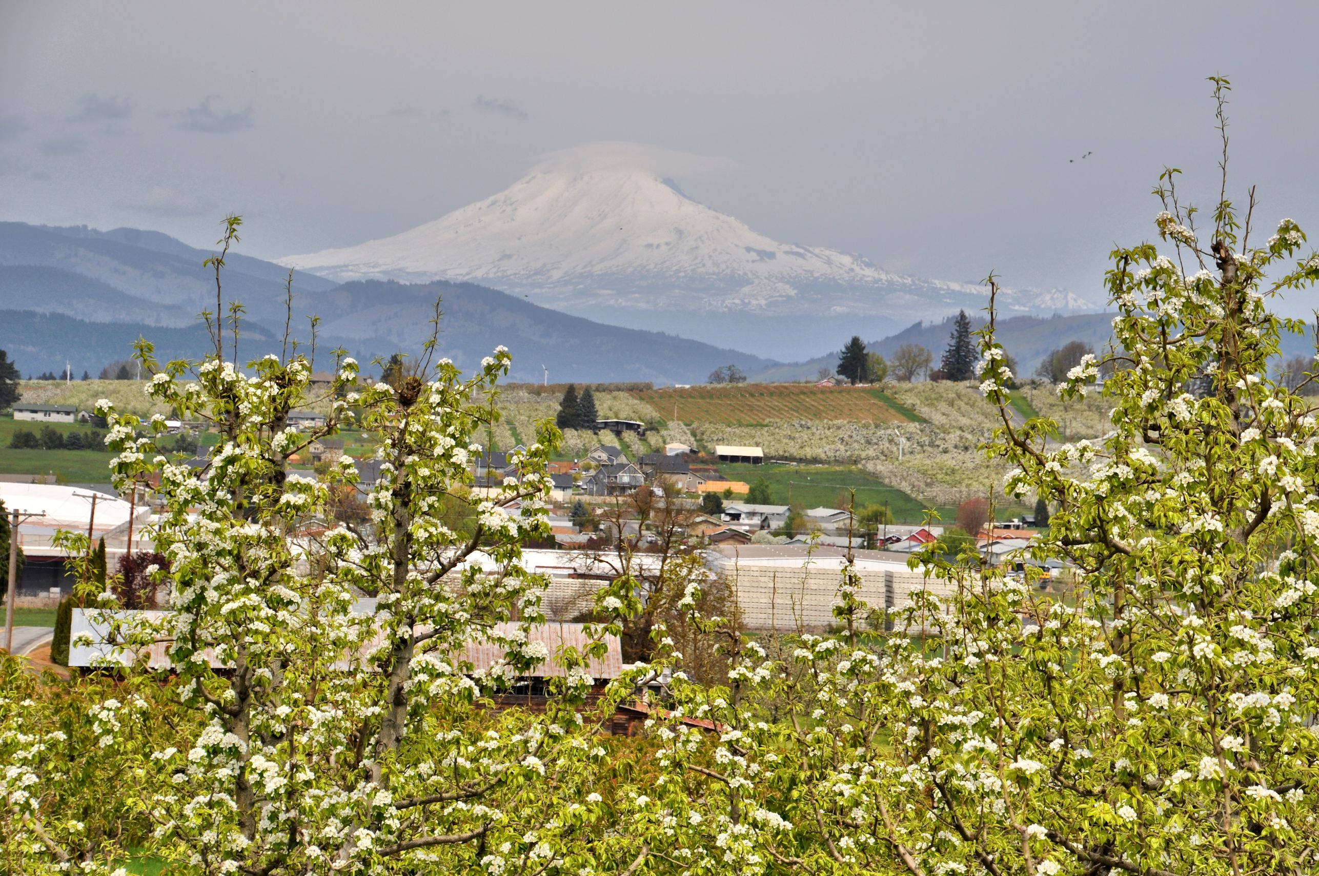 Apple orchards flourished in this rich valley from 1890 to 1920, and Hood River became famous for its apples. In 1919 many apple trees were struck by a killing freeze. Farmers replaced the apple trees with pear trees, and now Hood River county leads the world in Anjou Pear production. {source: The City of Hood River}