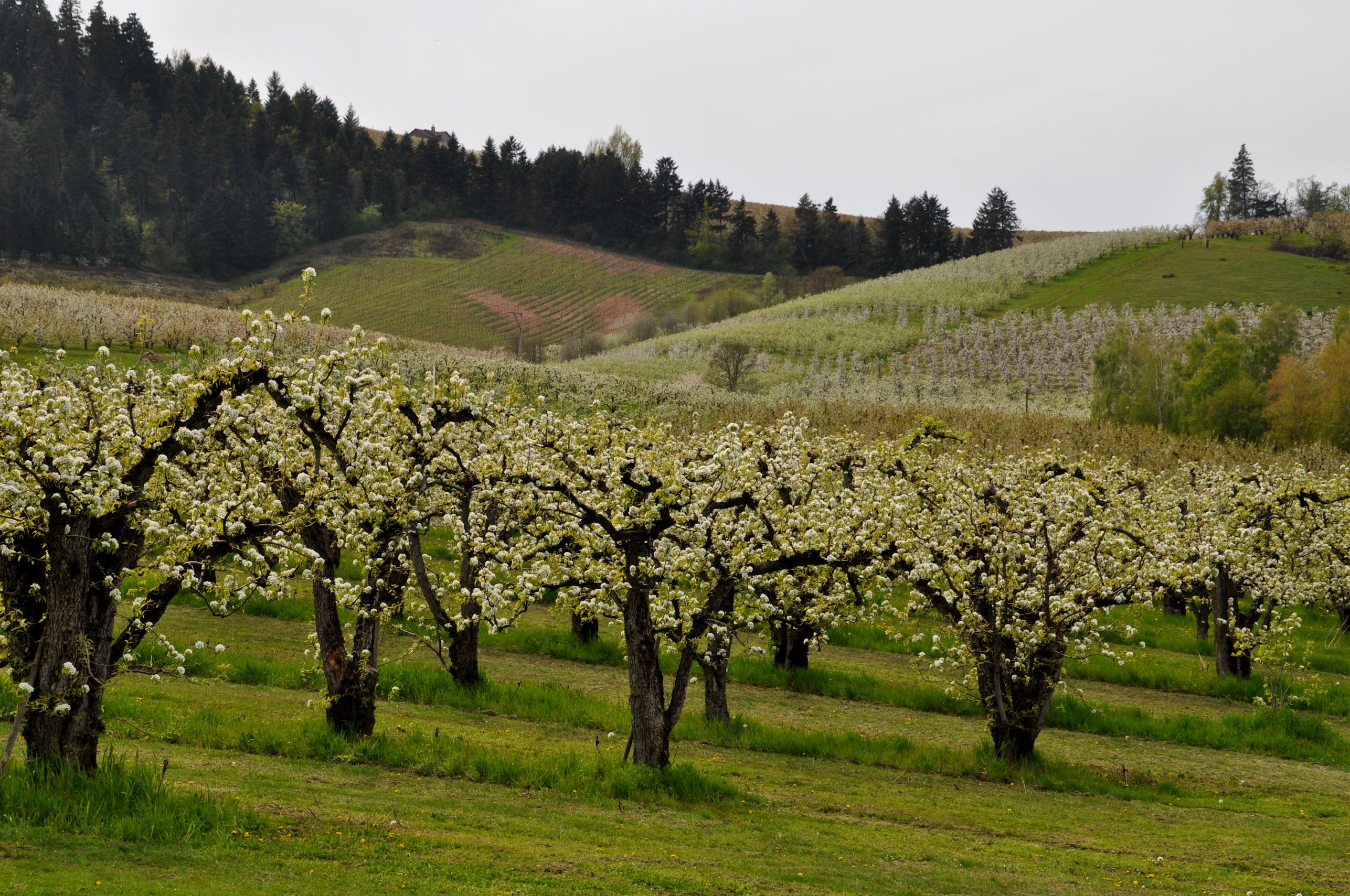 Many Hood River Valley orchards are relatively small and operated by families, but together they account for about two-thirds of the state’s pears. Since 1992, the Hood River Valley has branded itself as the Fruit Loop, the brainchild of growers Kaye White and Thom Nelson, who proposed an excursion map of U-pick-it orchards and country stores. {source: The Oregon Encyclopedia}