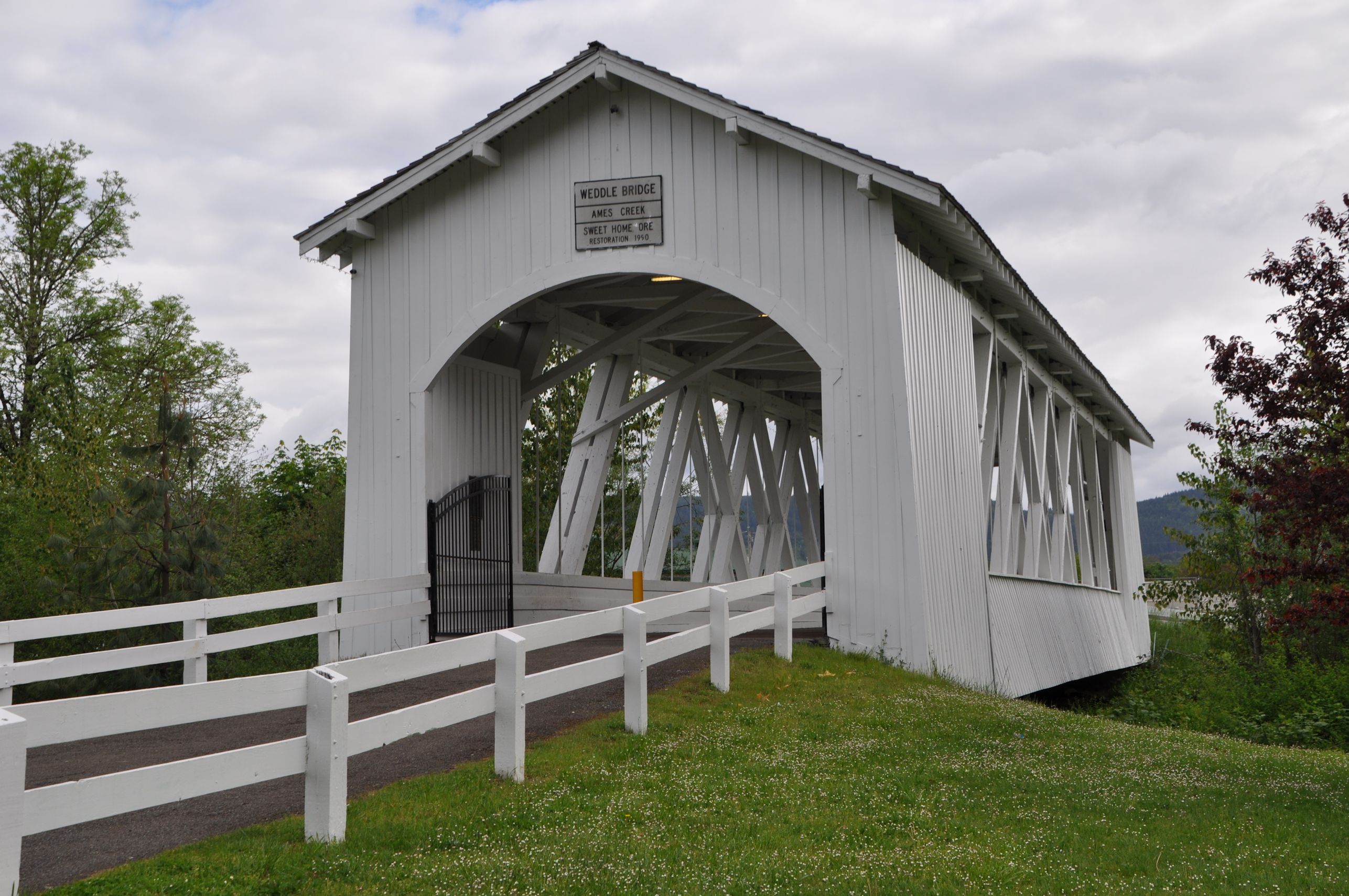 Weddle Bridge now sits in a place of honor in Sweet Home, Oregon. It was originally built near Crabtree, Oregon.