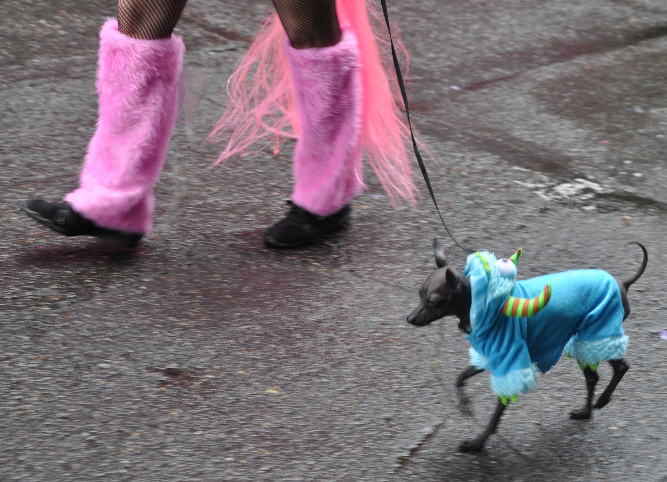 Ok, I’ll say it: this had to be a crushing blow to a dog ego, if there is such a thing. There were lots and lots of parade dogs this year, all decked in finery from pink tutus to monster costumes and rainbow clown collars. Oh, you poor doggies. I hope your people took you home and gave you bunches of love for putting up with our human silliness. 🙂