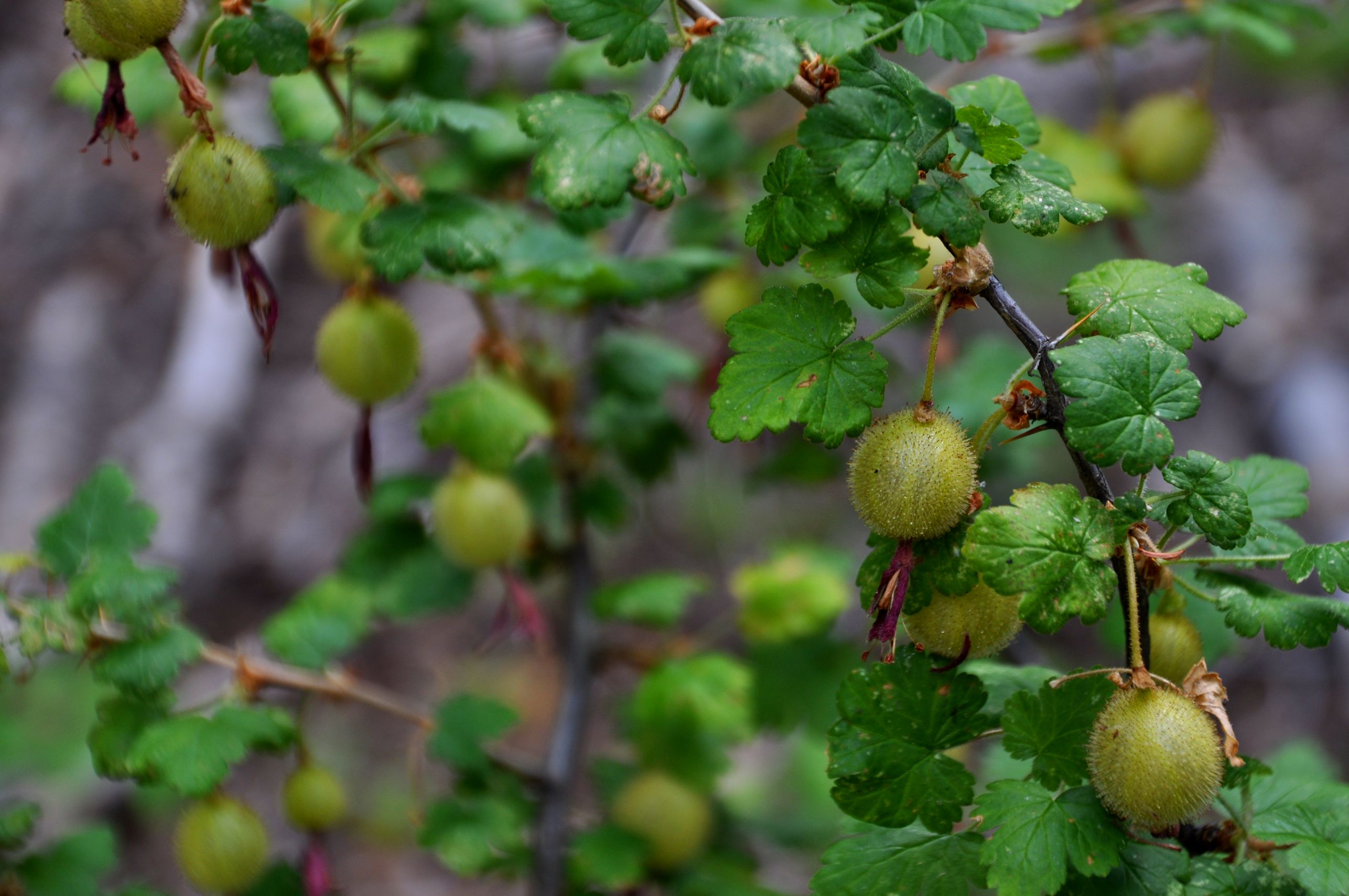 I also found bushes loaded with berries – ripe near the beginning of the trail, but still green or not yet formed at the end of the trail. What a plethora of berries this time out. Gooseberries, thimbleberries, dewberries, and Oregon grape (didn’t eat those!) all tempting me along the trail.