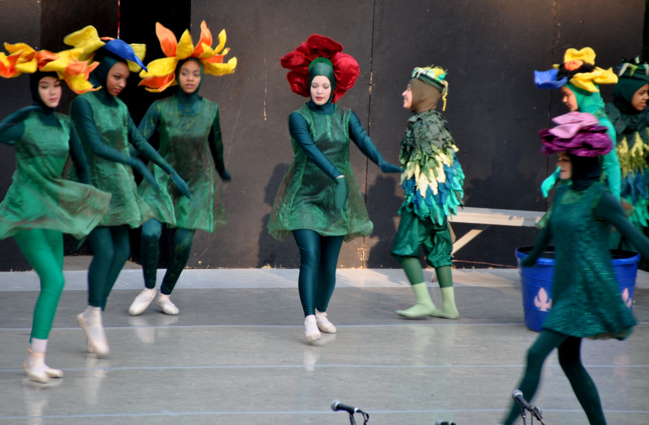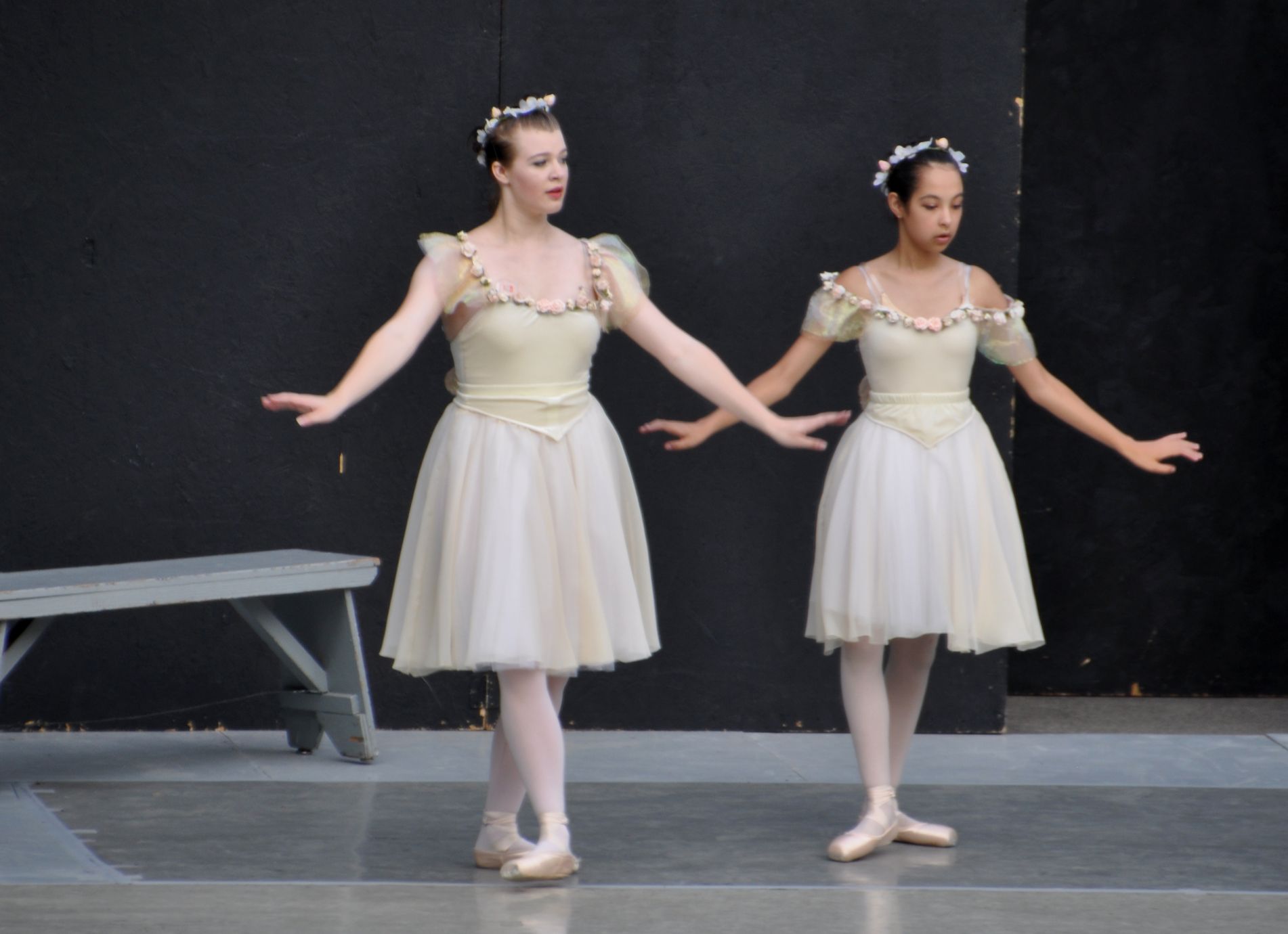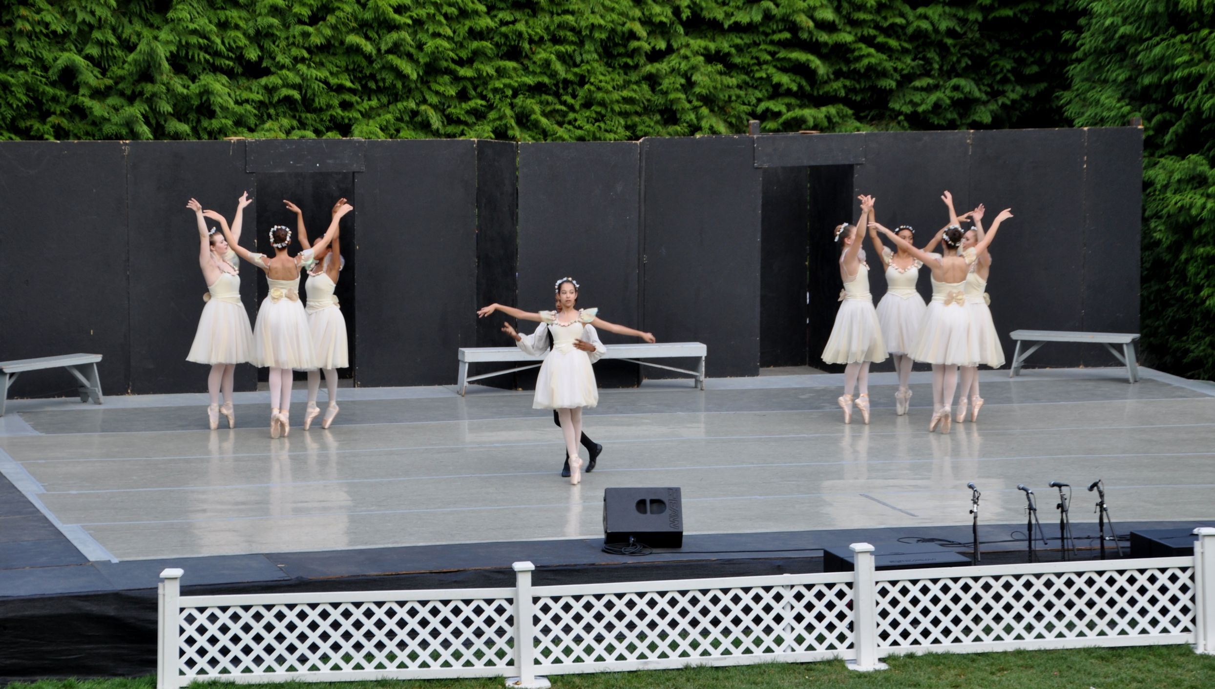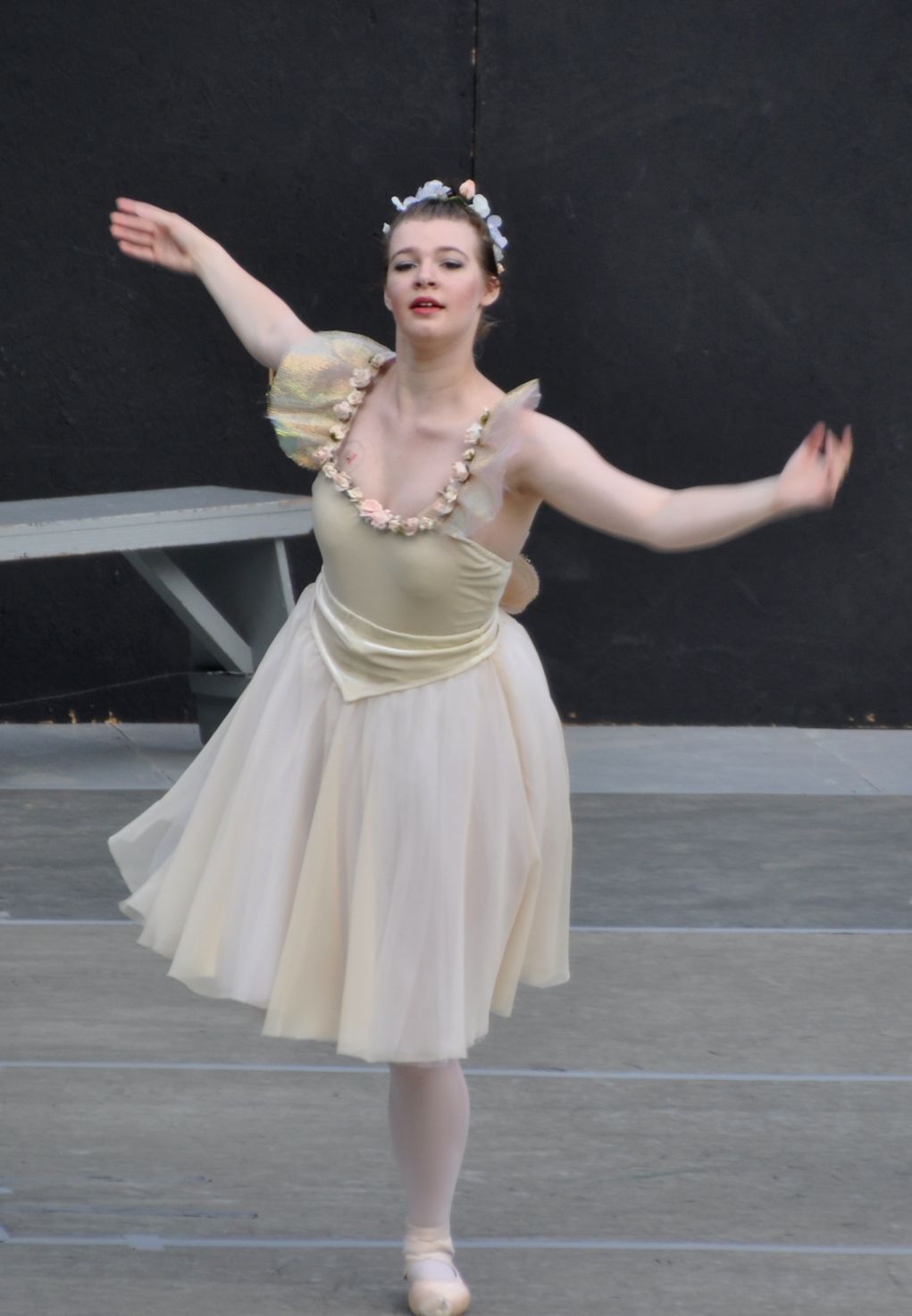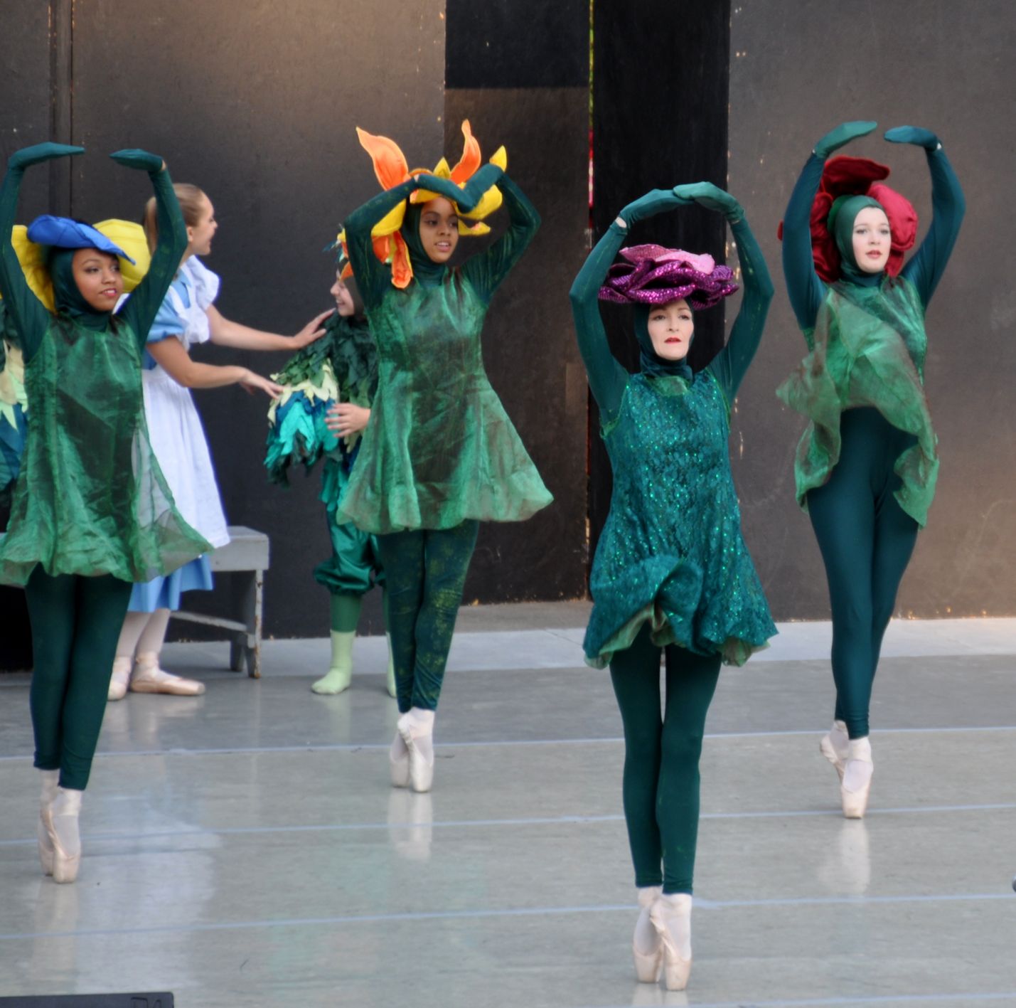The dancers did short pieces from their recent full-length ballet, Alice In Wonderland, with additional classical ballet pieces, and some swing dance. Sadly, the sky was getting pretty dark by the time the swing dancing began. I was sitting far away from the stage and had my lens in full zoom. The exposure was longer because of the dark, and extra-sensitive to movement. This meant that all of the later shots were blurry, but they did make some pretty interesting images, so I included them anyway.
