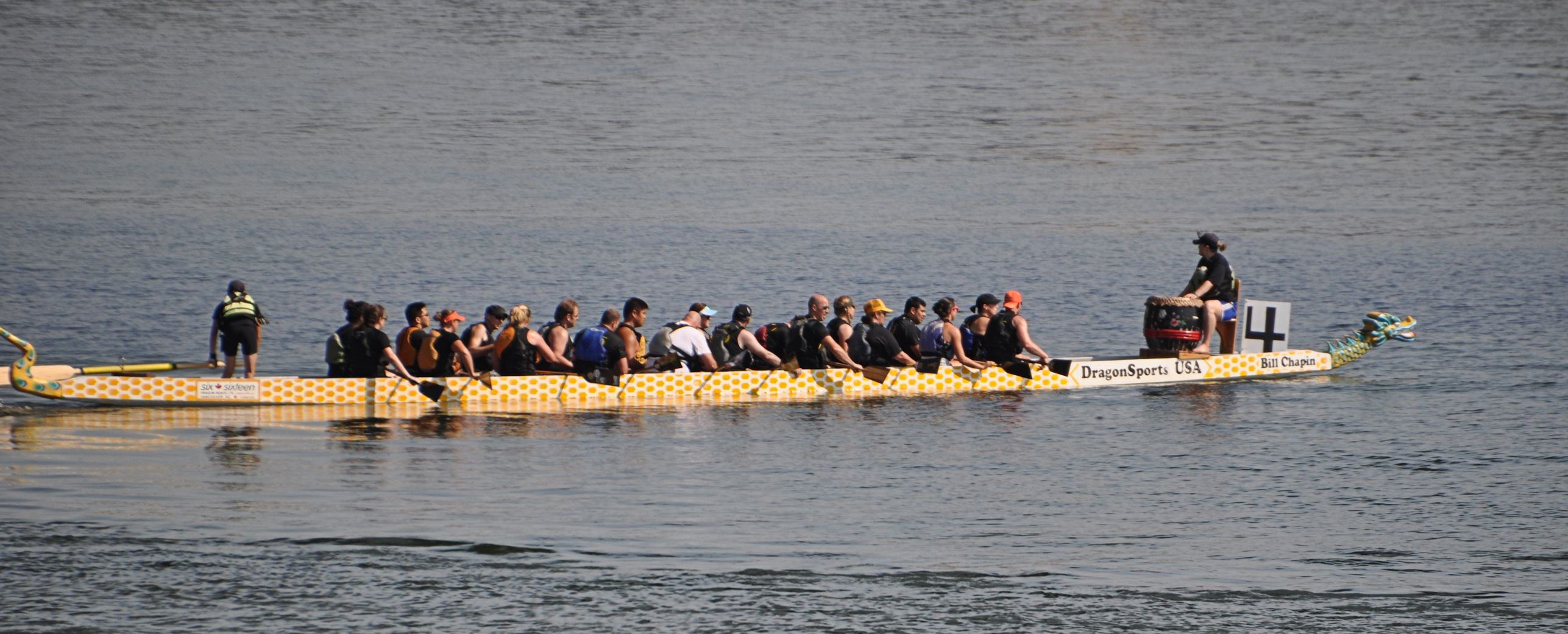 Portland has been racing dragon boats in the Rose Festival for 25 years. We partner with our sister city of Kaohsiung, Taiwan in this endeavor, and the race is hosted by the Portland-Kaohsiung Sister City Association (PKSCA). PKSCA owns eight Taiwan-style dragon boats; each boat accommodates 16 paddlers, 1 tiller, 1 caller, and 1 flag catcher required for each race heat.