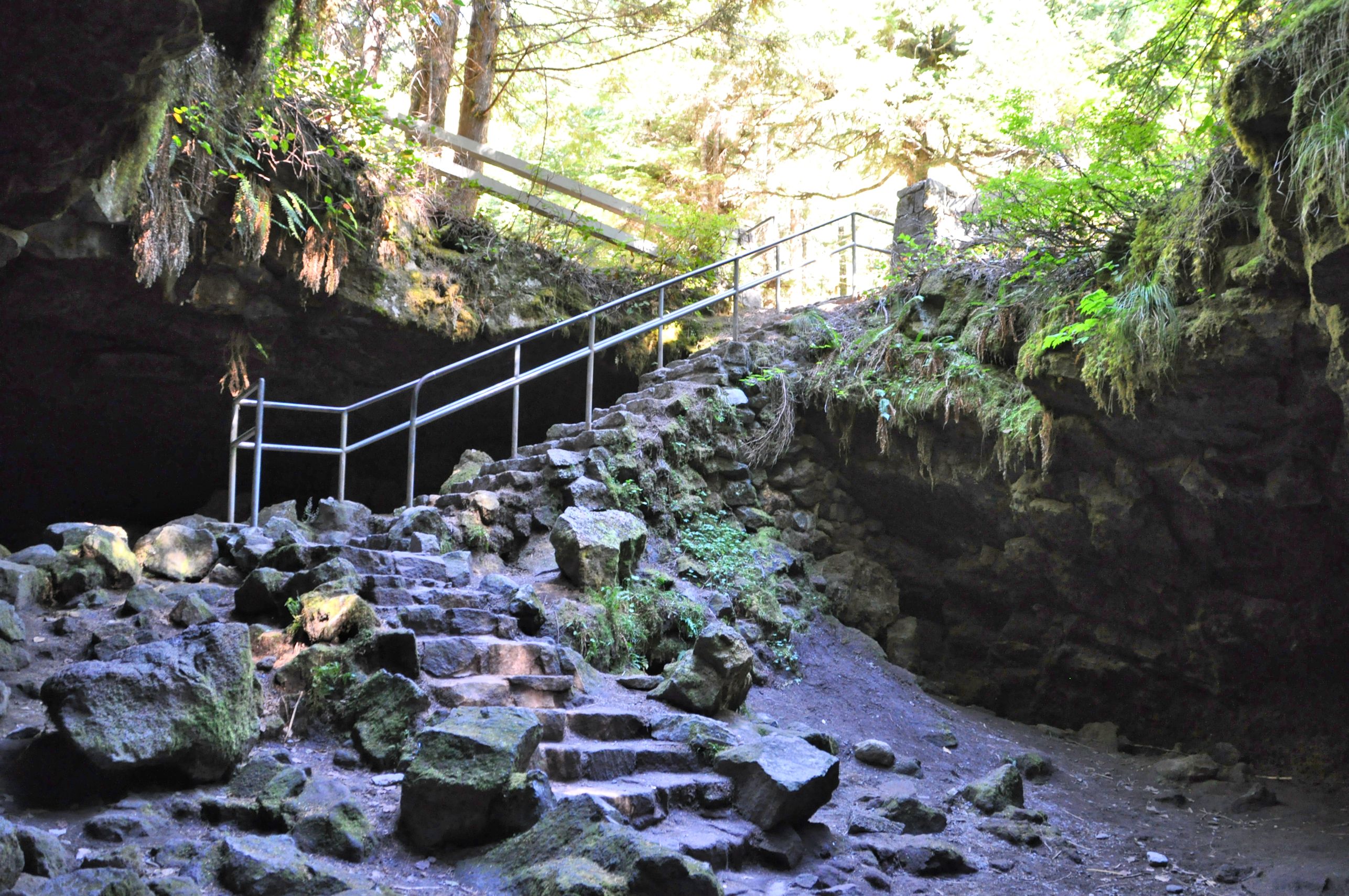 2000 years ago, Mt. St. Helens erupted with fluid lava. As it flowed in enormous, thick rivers, the outside of the river cooled and hardened while the inside remained hot and continued to flow. The lava melted the rock it was flowing across, carrying it away and deepening the channel. When the eruption finally stopped, the remaining liquid river flowed out the end of the tube, emptying it, and leaving a lava shell that eventually was covered by dirt and forest.