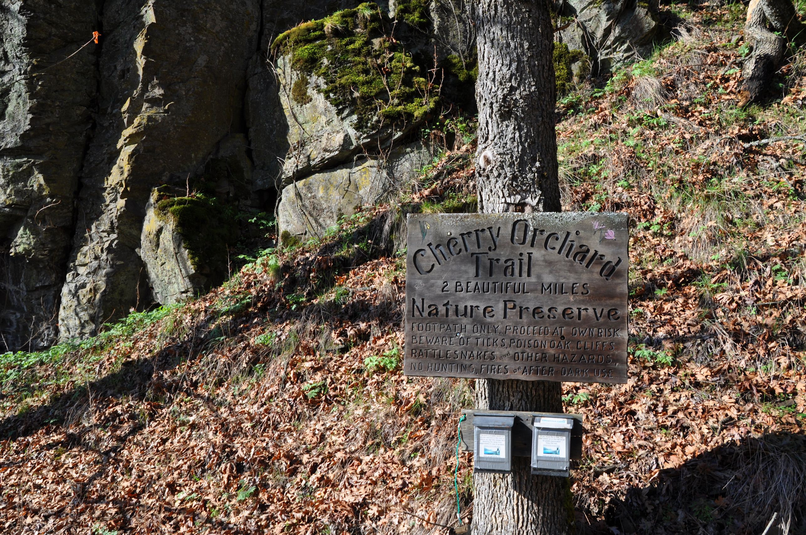 A lovely trailhead sign for the Cherry Orchard Trail.