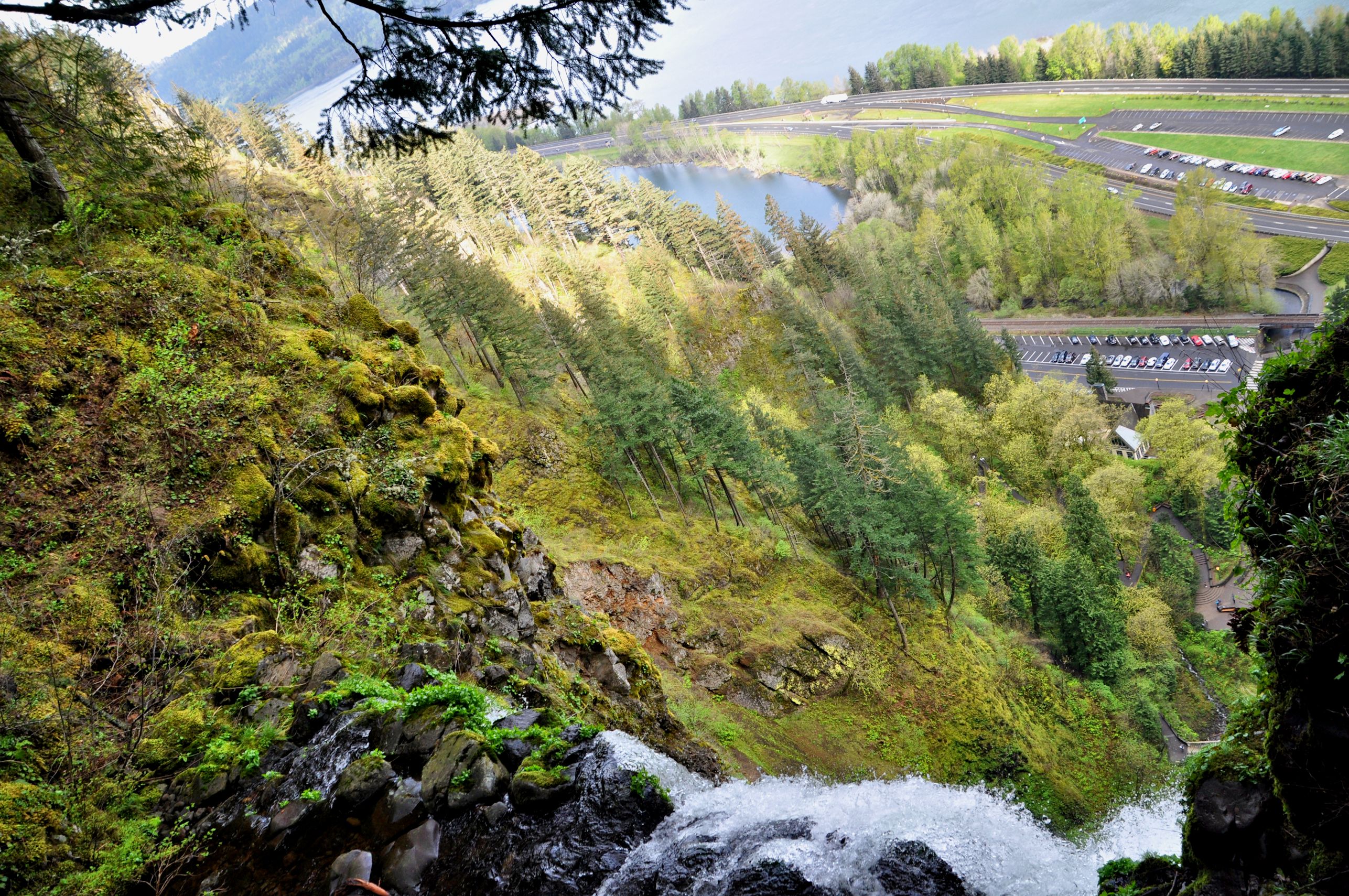 Looking over the edge of Multnomah Falls, down to the parking lot and I-5 below. Doesn't this perspective mess with your equilibrium?