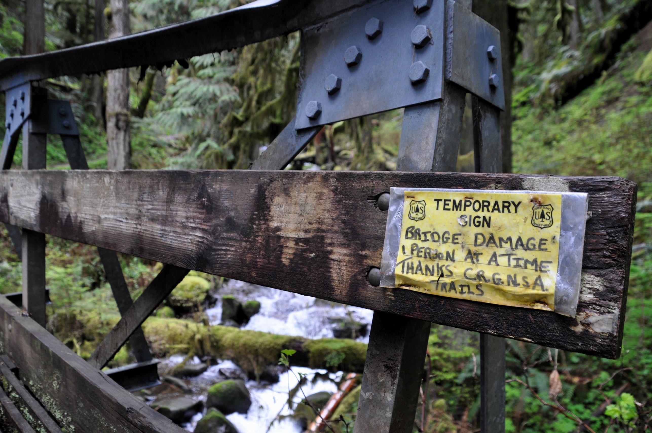 1. We all crossed the bridge. It was not as bad as the sign made it seem, but the sign warning us was so funny!