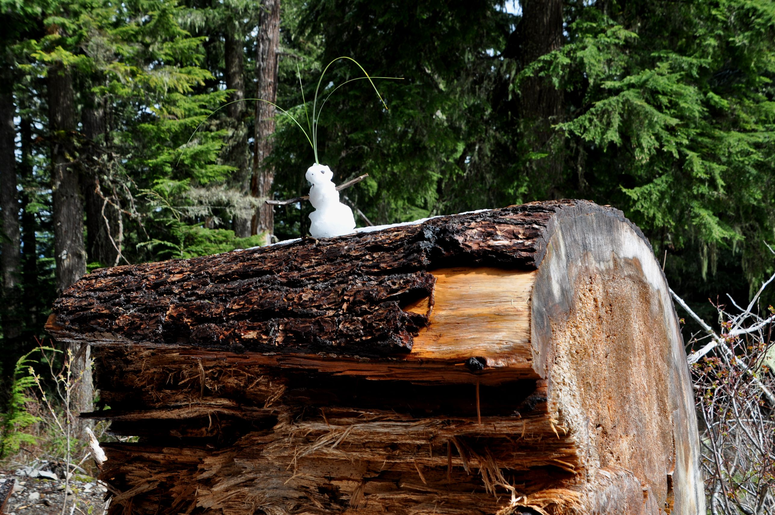 To our surprise, about 1.5 miles from the top, we walked into snow. It started off so beautifully: a lovely layer of white to change our forest views. We were very excited, taking photos and giving some accessories to a tiny snowman that someone else built along the trail.