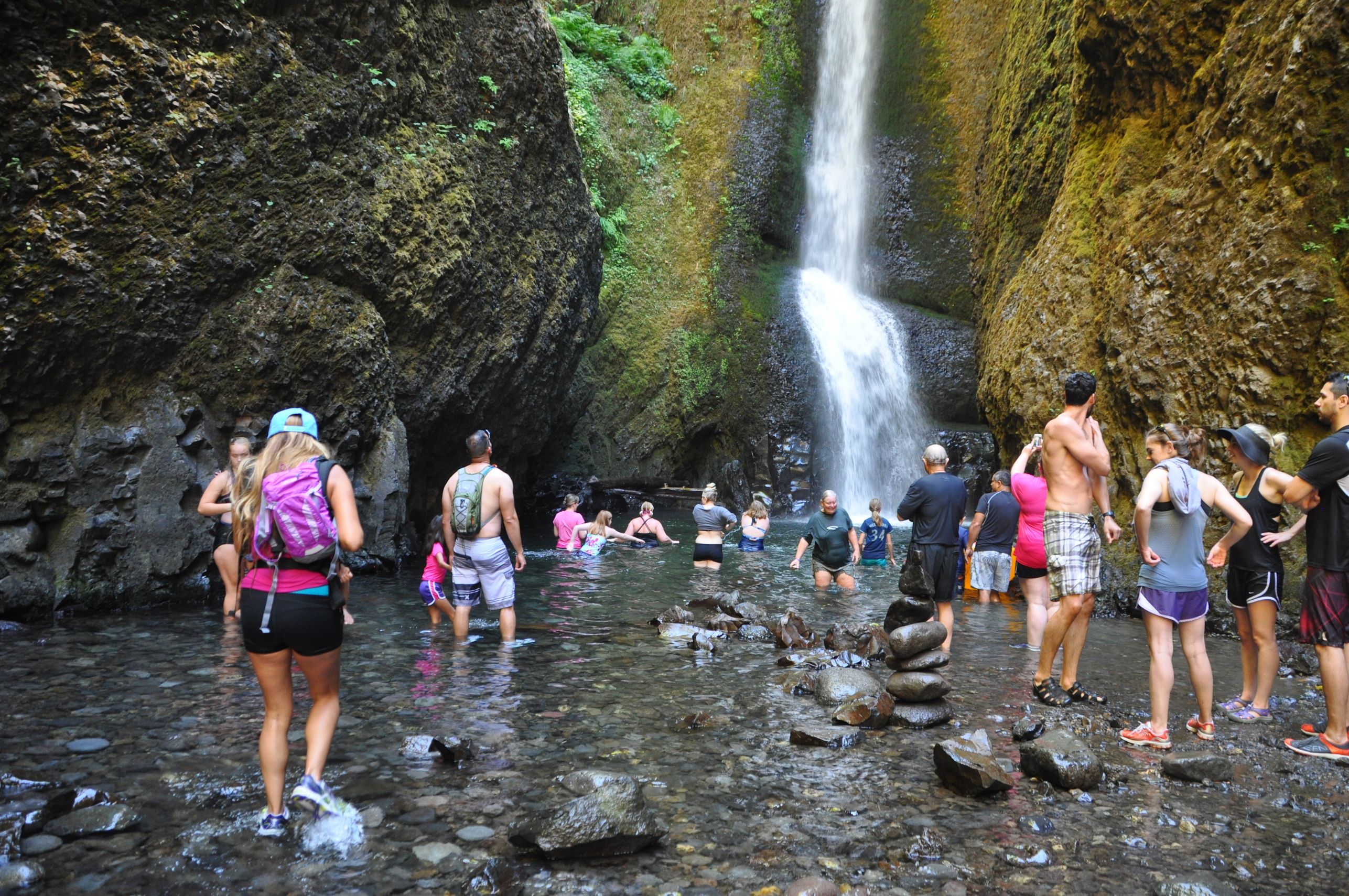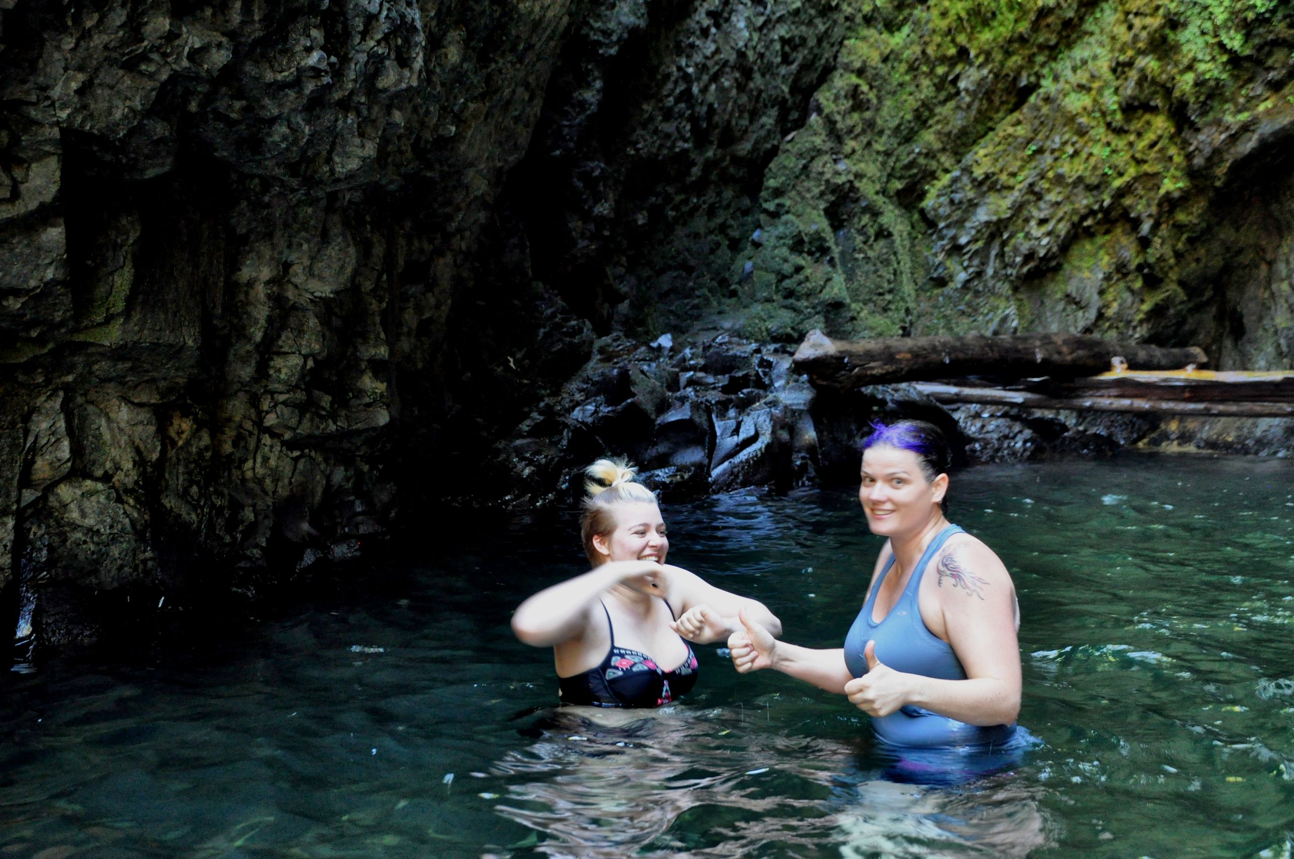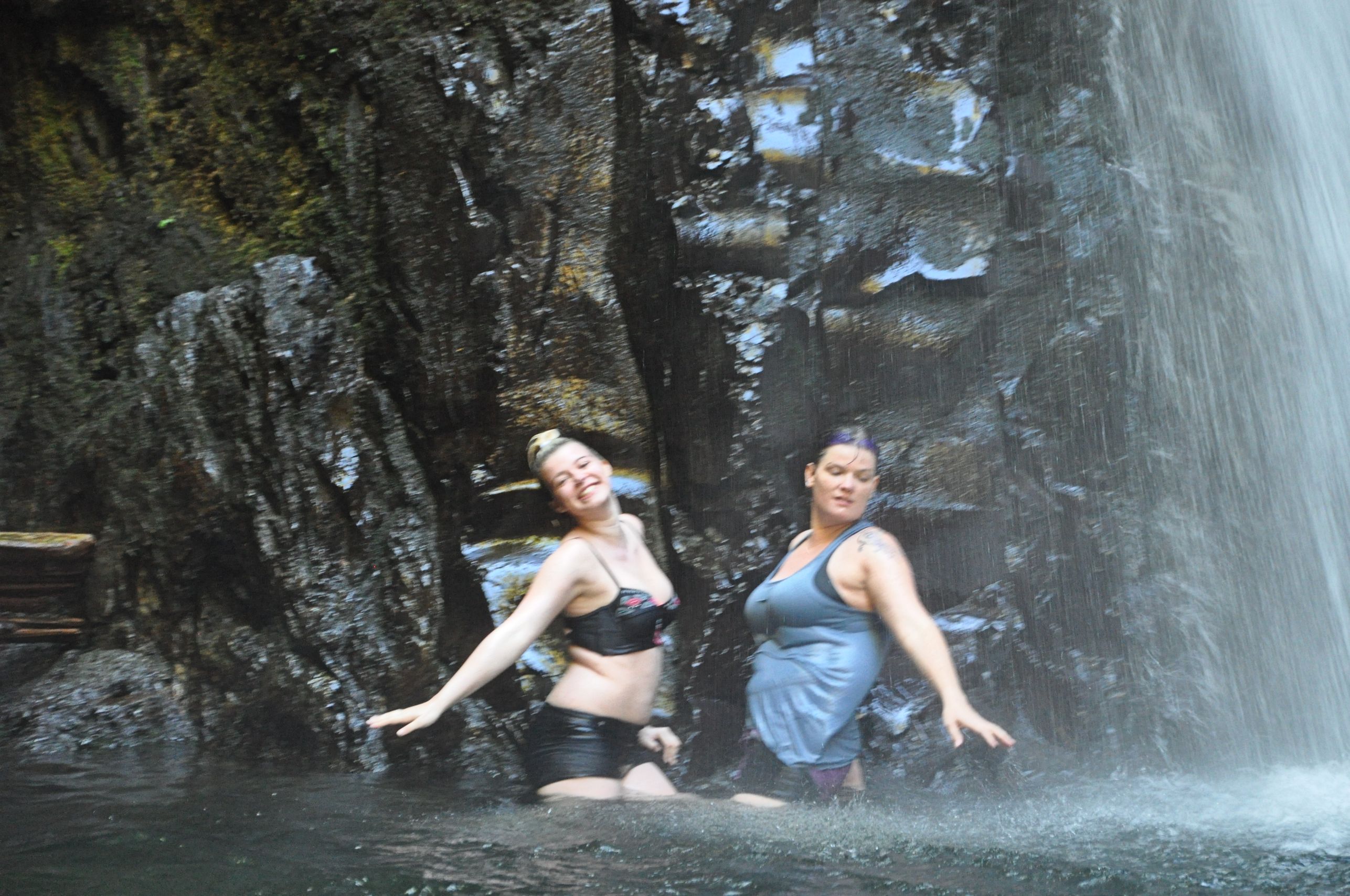 At the end, there is an inviting pool at the base of the falls. While Tara and G swam and climbed and jumped into the water, I stood waist-deep in the pool and took photos. The spray was blasting throughout the hollowed out spot, so I did not get very many photos in focus.