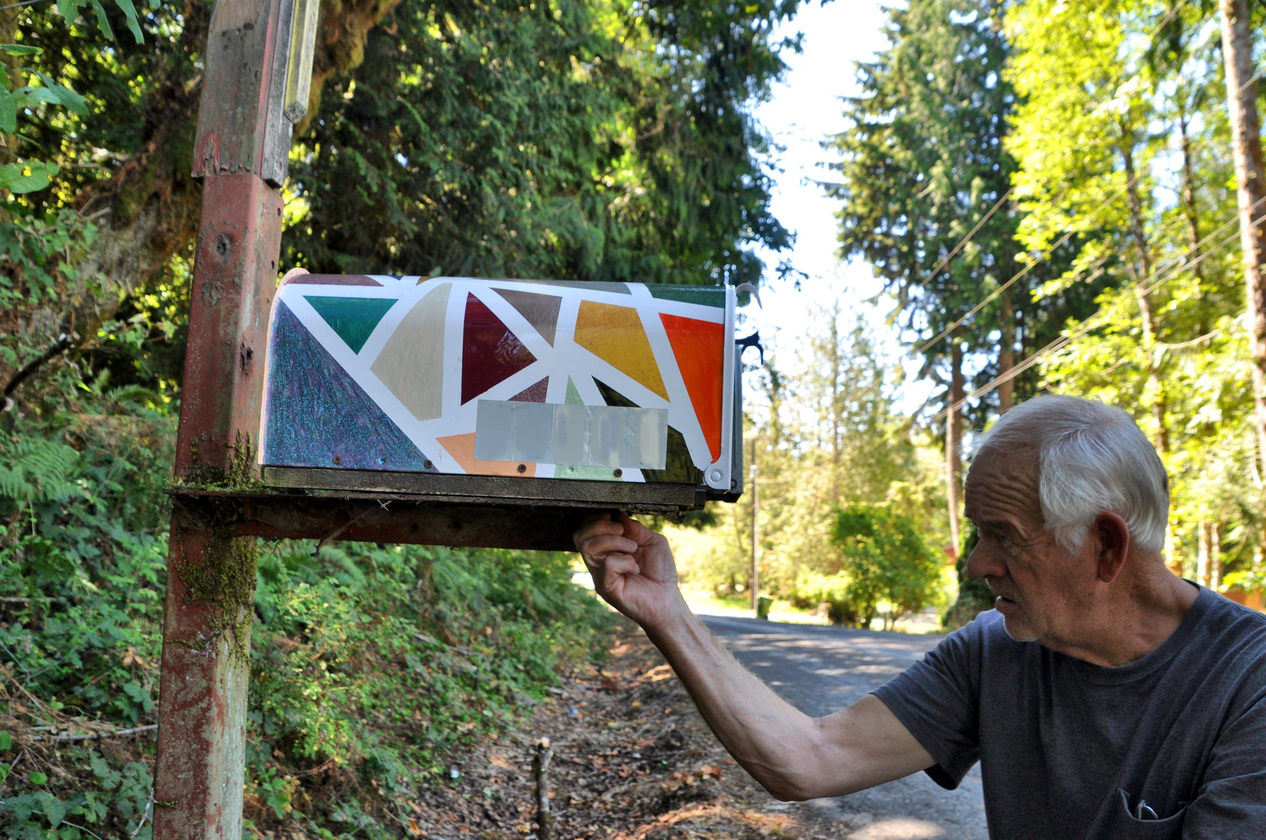 My step-father came for a visit for a couple days  down from Moyie Springs, Idaho. He was restless looking for projects, and asked if we wanted the mailbox mounted. Yes we did! While I was working at the computer, my step-father removed the old box and got the new one ready, then called Tara and me to see if we wanted to witness the installation. Yes we did!