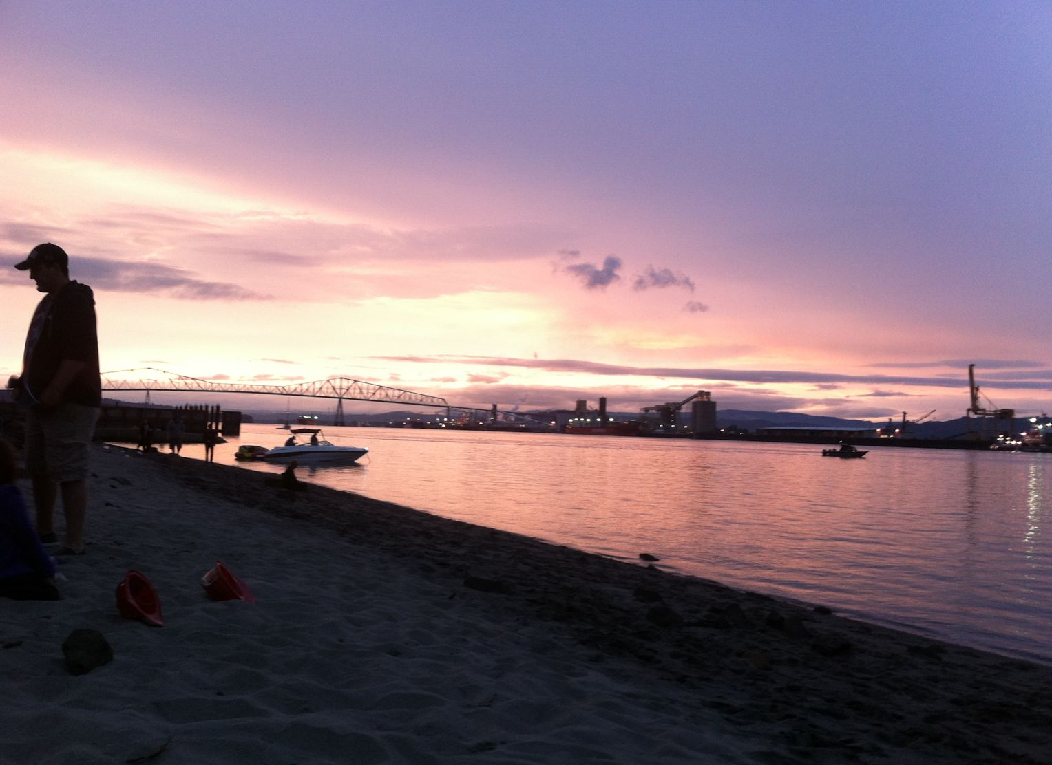 We joined the local annual festival here in tiny Rainier, and gathered at a pretty park right on the Columbia River with hundreds of others as the sun went down. The Washington side of the river hosts a seaport, with barges and tugs, lumber and pulp mills and their narrow towers reaching to the sky and covered in lights. It’s not at all pristine, but I’m growing to love those sparkling towers at night. I can find beauty anywhere.