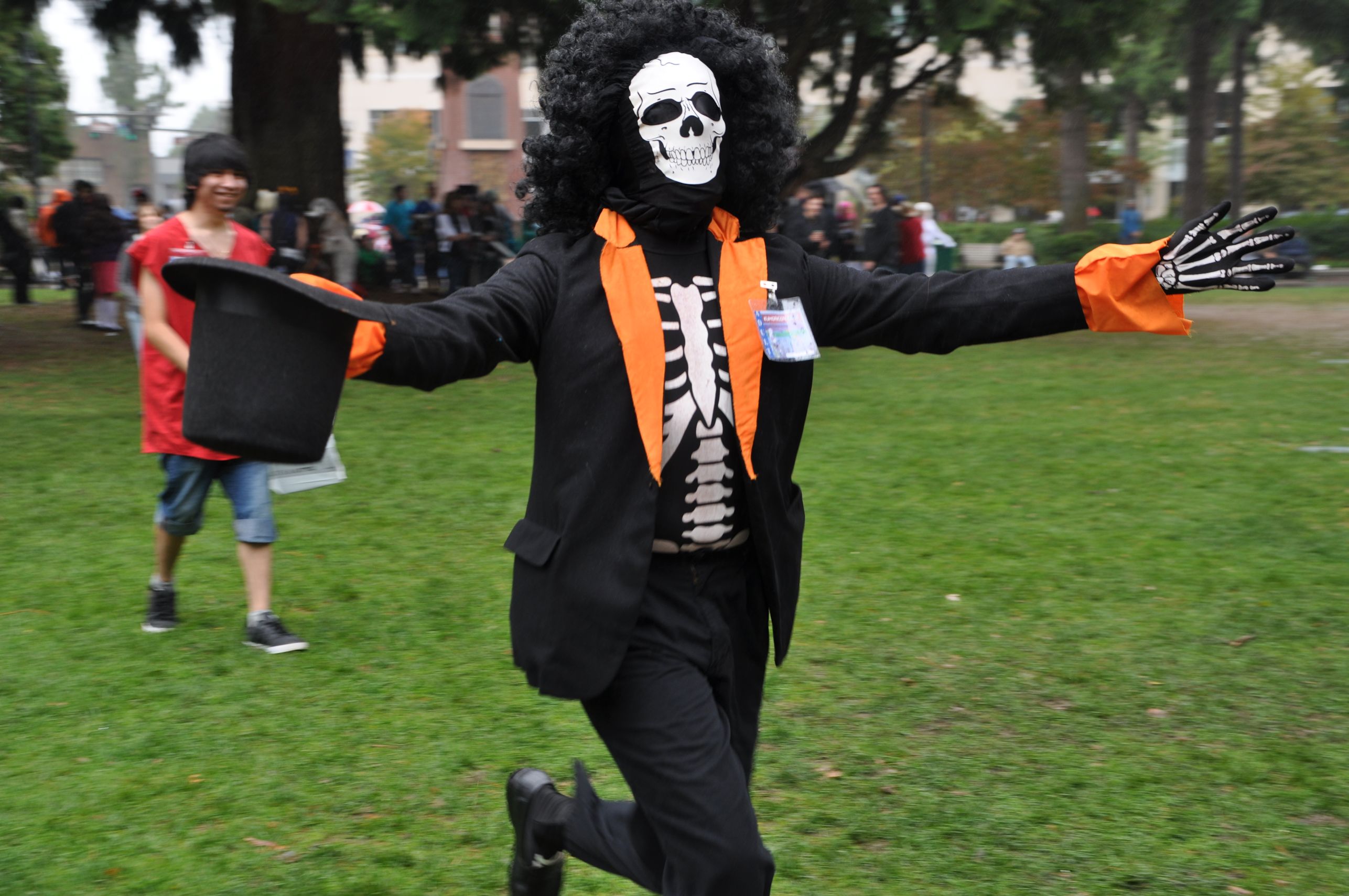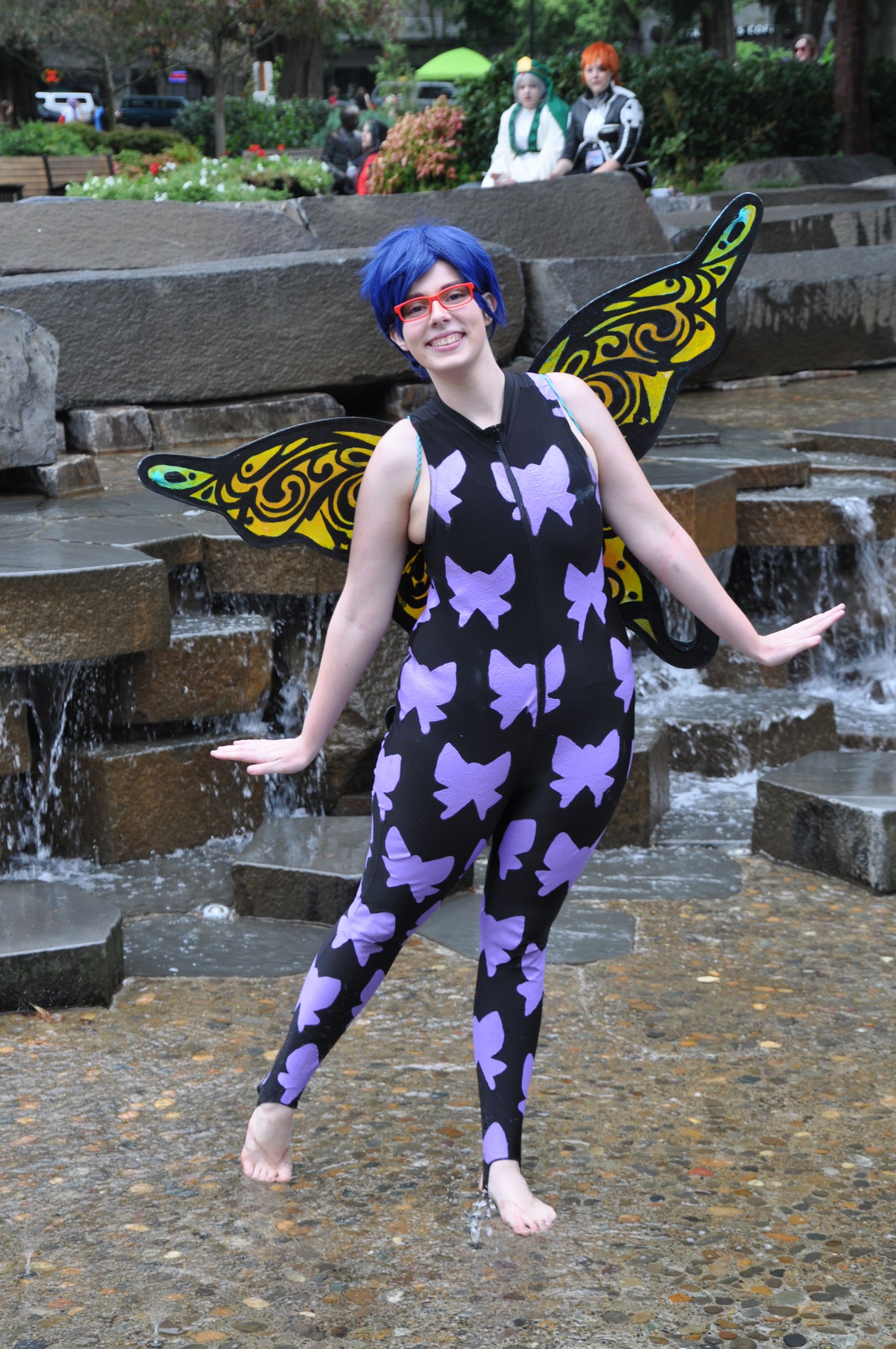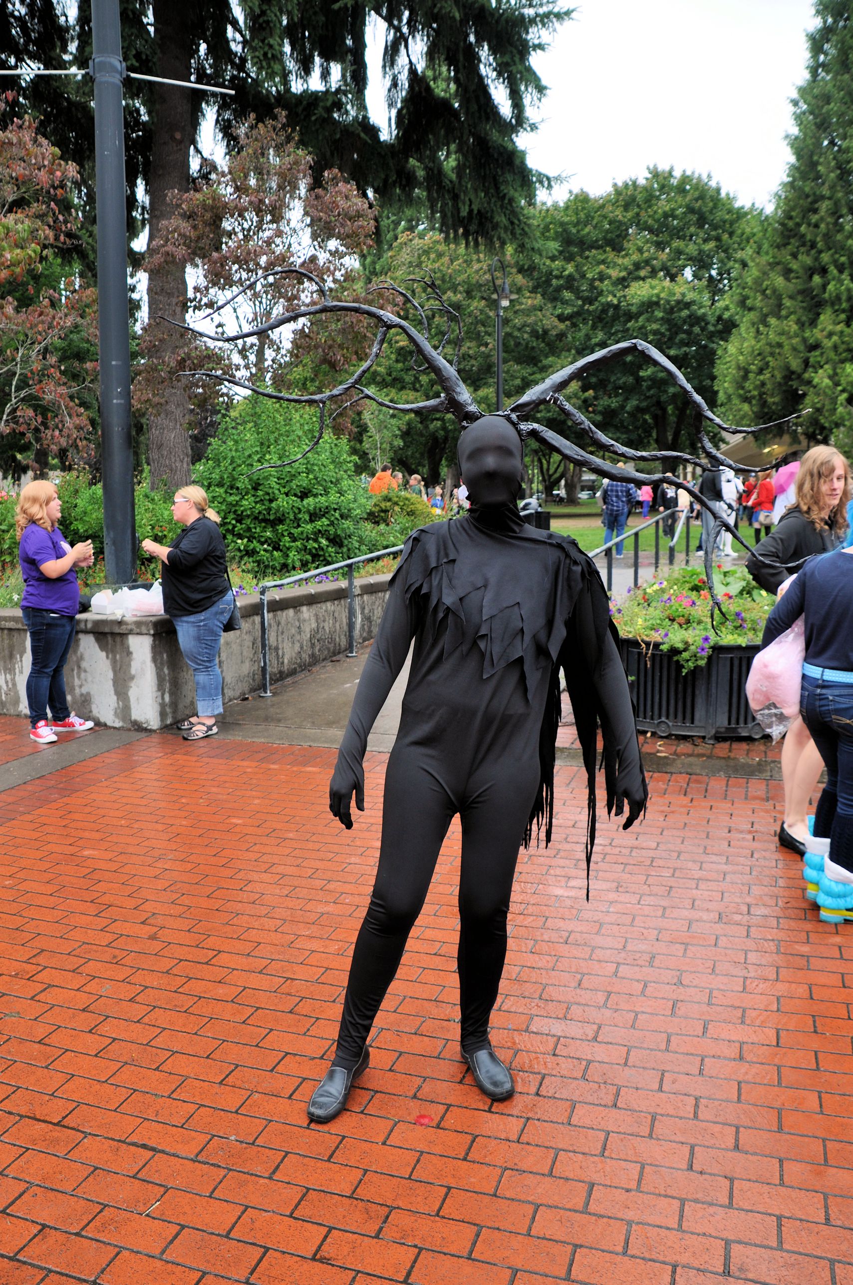 One thing I love about this convention is that it often catches innocent townspeople by surprise. They are usually delighted (sometimes scared), and pull out their phones to take pictures so that they can prove to the people at home that they really did see it. Kumoricon is across the street from Esther Short Park and the park becomes a logical place for the cosplayers to hang out and play games and eat lunch. Mario and Luigi (Mario videogames) might toss a volleyball with Twilight Sparkle (My Little Pony) and Godzilla, and Spiderman might share a pizza with Naruto, and some Homestuck trolls. Local people will ride through on bikes, or stop at the Farmer’s Market – also held in the park – and their eyes widen with amazement.
